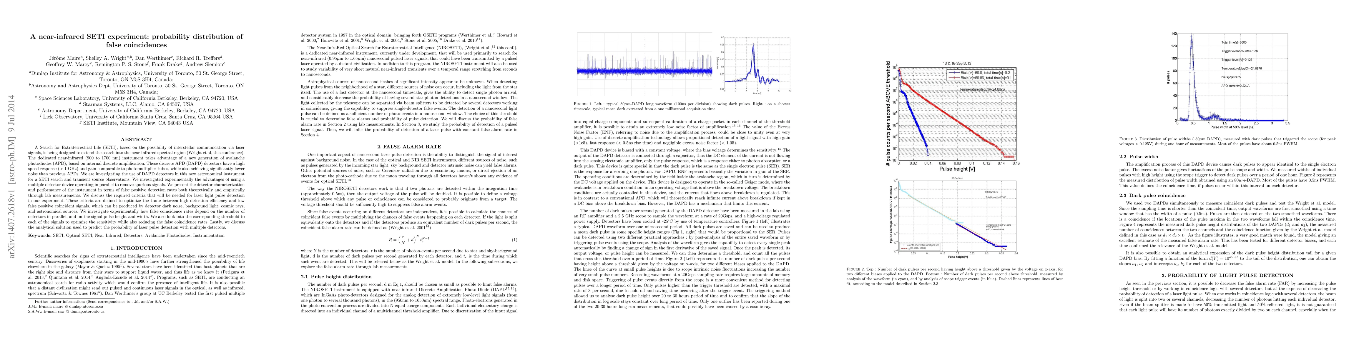 This paper details a new near-infrared SETI experiment utilizing advanced avalanche photodiodes for detecting interstellar laser signals. It investigates the probability distribution of false coincidences and the effectiveness of multiple detector arrays in reducing noise and optimizing detection efficiency.