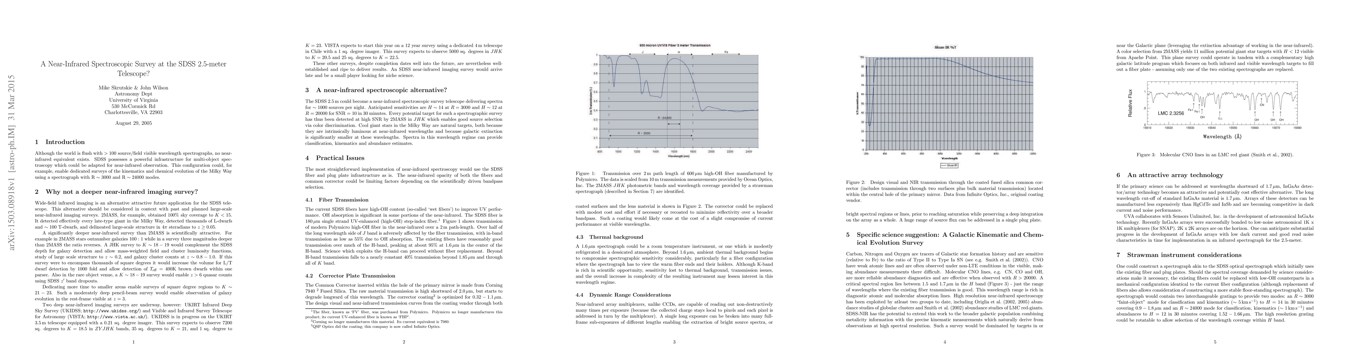 We are posting this 10-year-old white paper to support an upcoming survey description paper for the SDSS-III Apache Point Galactic Evolution Experiment (APOGEE) led by PI Dr. Steven Majewski. The white paper presented here was a contribution to a 2005 "futures" planning process for the Astrophysical Research Consortium led by Dr. Donald York that examined both prospects for extending the work of SDSS and SDSS-II as well as enhancing the capabilities of the Apache Point 3.5-meter telescope and the overall scientific reach of the Consortium. This particular white paper describes the potential for using the Sloan 2.5-meter telescope and its fiber optic infrastructure to conduct a galactic plane chemical abundance survey in the low-extinction 1.6um H-band. The survey would target >1000 red giant stars per night selected from the Two Micron All Sky Survey using a >200 fiber near-infrared spectrograph operating at spectral resolution of R~24,000 with a magnitude limit of H~12 - very close to the final APOGEE implementation. A number of features suggested in the white paper did not survive to the actual survey including an R~3000 low-resolution spectral mode emphasizing kinematics to a fainter magnitude limit of K~14, a tunable high-resolution grating (retired by using three HAWAII-2RG arrays to cover most of the H-band all at once), a refrigerated optical train (the actual APOGEE is LN2 cooled), and the use of InGaAs arrays (HgCdTe remained the most mature technology at the time of construction). The white paper also suggests making the APOGEE instrument accessible to the 3.5-meter telescope at Apache Point, a project now underway.