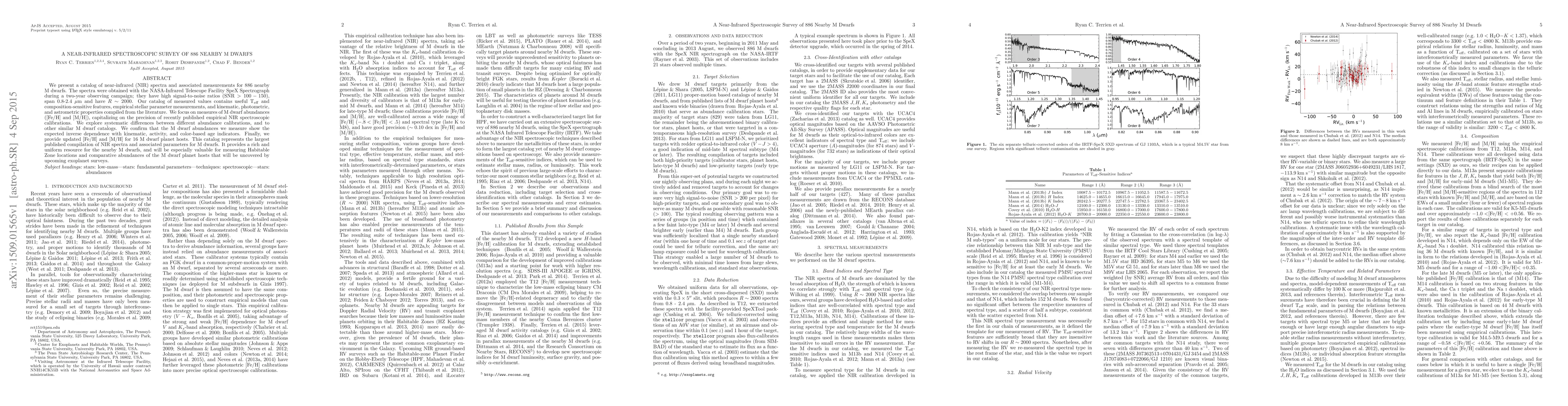 This paper presents a comprehensive catalog of near-infrared spectra for 886 nearby M dwarfs, obtained with high precision using the SpeX Spectrograph. The catalog includes detailed measurements of stellar parameters, abundances, and kinematic properties, which will be valuable for exoplanet surveys and studies of the Habitable Zone around M dwarfs.