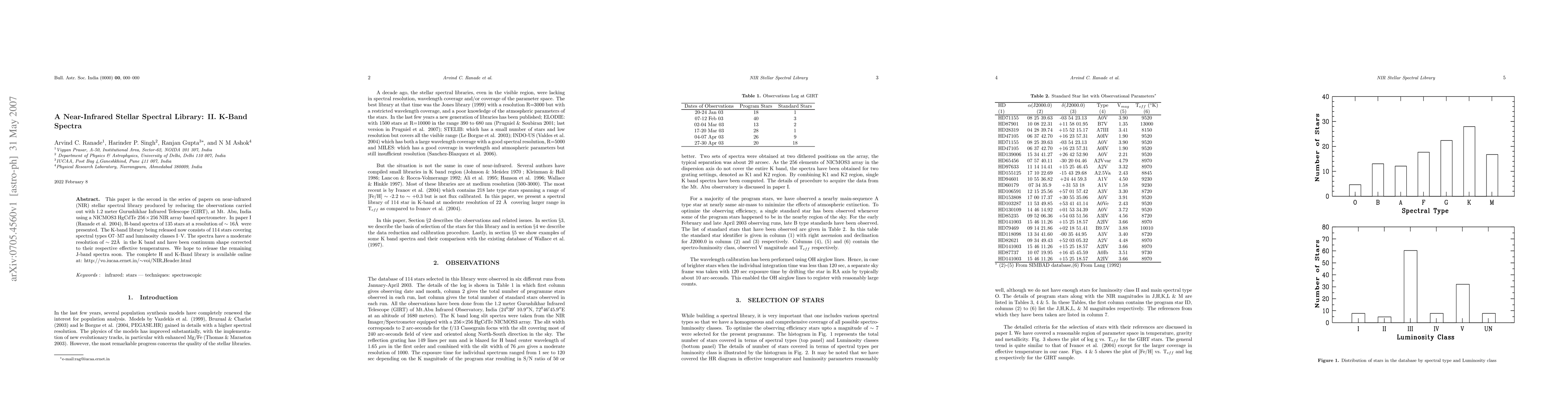 This paper is the second in the series of papers on near-infrared (NIR) stellar spectral library produced by reducing the observations carried out with 1.2 meter Gurushikhar Infrared Telescope (GIRT), at Mt. Abu, India using a NICMOS3 HgCdTe 256 X 256 NIR array based spectrometer. In paper I (Ranade et al. 2004), H-band spectra of 135 stars at a resolution of ~16 Ang were presented. The K-band library being released now consists of 114 stars covering spectral types O7--M7 and luminosity classes I--V. The spectra have a moderate resolution of ~22 Ang in the K band and have been continuum shape corrected to their respective effective temperatures. We hope to release the remaining J-band spectra soon. The complete H and K-Band library is available online at: http://vo.iucaa.ernet.in/~voi/NIR_Header.html