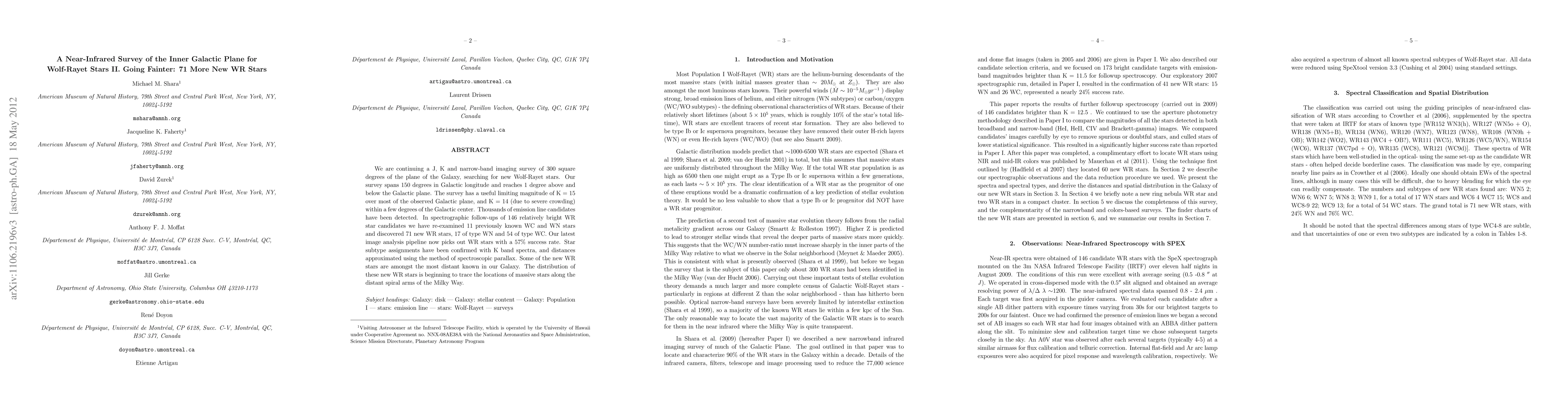 We are continuing a J, K and narrow-band imaging survey of 300 square degrees of the plane of the Galaxy, searching for new Wolf-Rayet stars. Our survey spans 150 degrees in Galactic longitude and reaches 1 degree above and below the Galactic plane. The survey has a useful limiting magnitude of K = 15 over most of the observed Galactic plane, and K = 14 (due to severe crowding) within a few degrees of the Galactic center. Thousands of emission line candidates have been detected. In spectrographic follow-ups of 146 relatively bright WR star candidates we have re-examined 11 previously known WC and WN stars and discovered 71 new WR stars, 17 of type WN and 54 of type WC. Our latest image analysis pipeline now picks out WR stars with a 57% success rate. Star subtype assignments have been confirmed with K band spectra, and distances approximated using the method of spectroscopic parallax. Some of the new WR stars are amongst the most distant known in our Galaxy. The distribution of these new WR stars is beginning to trace the locations of massive stars along the distant spiral arms of the Milky Way.