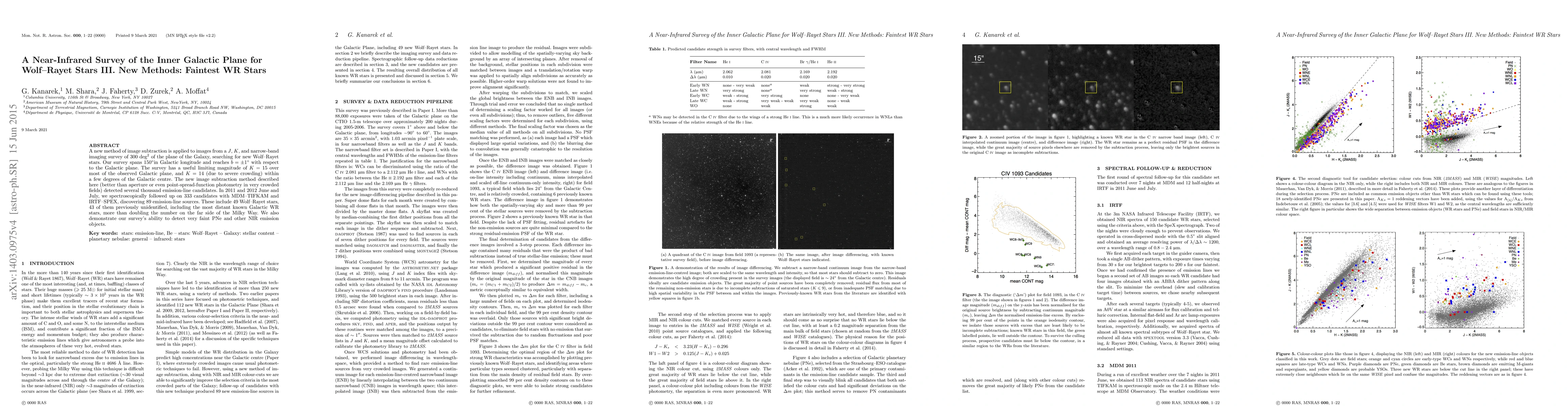 A new method of image subtraction is applied to images from a J, K, and narrow-band imaging survey of 300 square degrees of the plane of the Galaxy, searching for new Wolf-Rayet stars. Our survey spans 150 degrees in Galactic longitude and reaches 1 degree above and below the Galactic plane. The survey has a useful limiting magnitude of K =15 over most of the observed Galactic plane, and K =14 (due to severe crowding) within a few degrees of the Galactic center. The new image subtraction method described here (better than aperture or even point-spread-function photometry in very crowded fields) detected several thousand emission-line candidates. In June and July 2011 and 2012, we spectroscopically followed up on 333 candidates with MDM-TIFKAM and IRTF-SPEX, discovering 89 emission-line sources. These include 49 Wolf-Rayet stars, 43 of them previously unidentified, including the most distant known Galactic WR stars, more than doubling the number on the far side of the Milky Way. We also demonstrate our survey's ability to detect very faint PNe and other NIR emission objects.