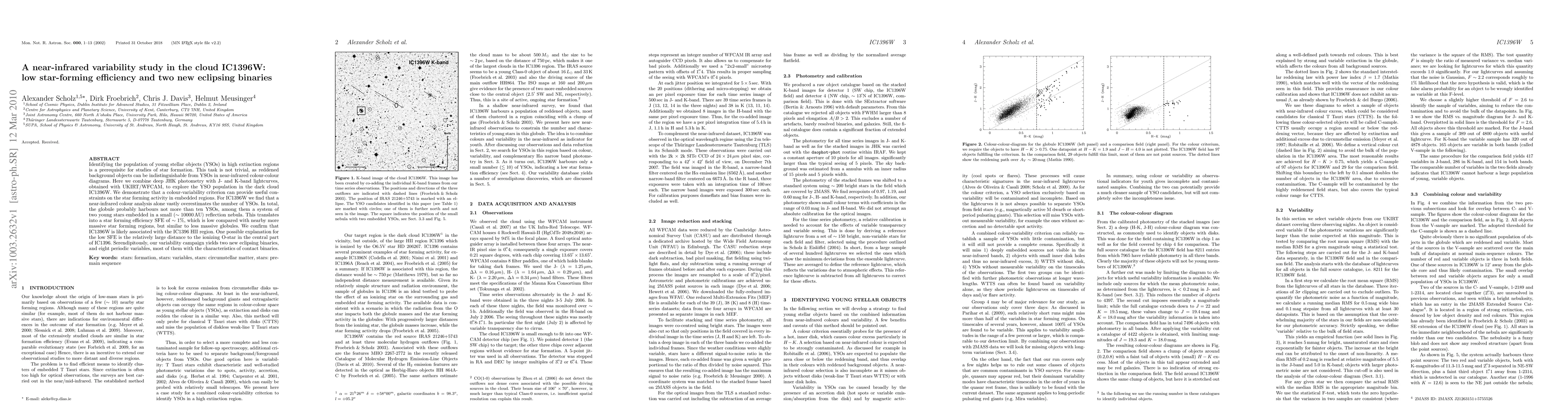 Identifying the population of young stellar objects (YSOs) in high extinction regions is a prerequisite for studies of star formation. This task is not trivial, as reddened background objects can be indistinguishable from YSOs in near-infrared colour-colour diagrams. Here we combine deep JHK photometry with J- and K-band lightcurves, obtained with UKIRT/WFCAM, to explore the YSO population in the dark cloud IC1396W. We demonstrate that a colour-variability criterion can provide useful constraints on the star forming activity in embedded regions. For IC1396W we find that a near-infrared colour analysis alone vastly overestimates the number of YSOs. In total, the globule probably harbours not more than ten YSOs, among them a system of two young stars embedded in a small (~10000 AU) reflection nebula. This translates into a star forming efficiency SFE of ~1%, which is low compared with nearby more massive star forming regions, but similar to less massive globules. We confirm that IC1396W is likely associated with the IC1396 HII region. One possible explanation for the low SFE is the relatively large distance to the ionizing O-star in the central part of IC1396. Serendipitously, our variability campaign yields two new eclipsing binaries, and eight periodic variables, most of them with the characteristics of contact binaries.