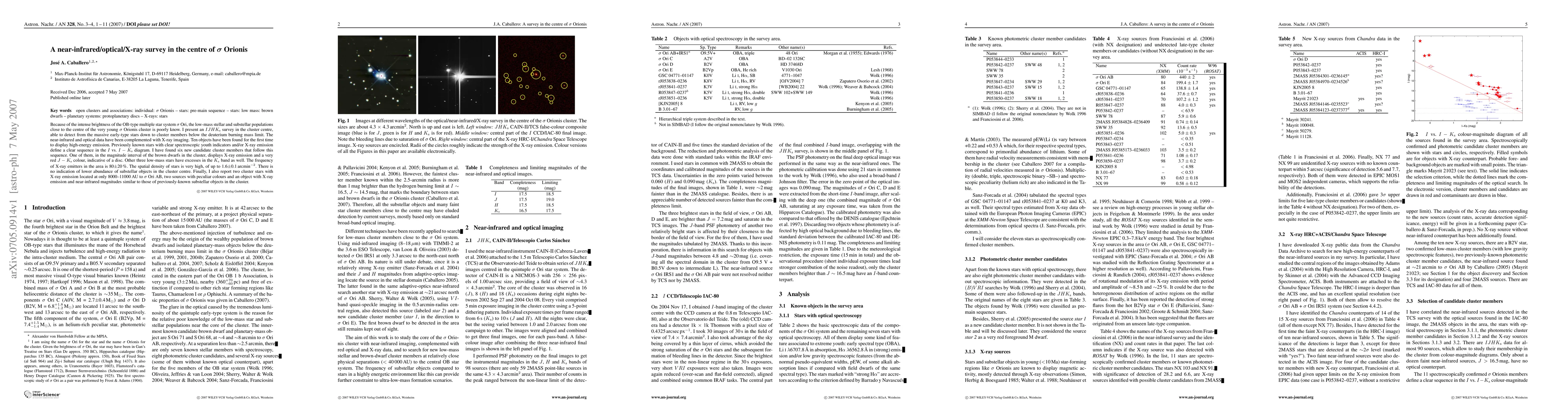 Because of the intense brightness of the OB-type multiple star system sigma Ori, the low-mass stellar and substellar populations close to the centre of the very young sigma Orionis cluster is poorly know. I present an IJHKs survey in the cluster centre, able to detect from the massive early-type stars down to cluster members below the deuterium burning mass limit. The near-infrared and optical data have been complemented with X-ray imaging. Ten objects have been found for the first time to display high-energy emission. Previously known stars with clear spectroscopic youth indicators and/or X-ray emission define a clear sequence in the I vs. I-Ks diagram. I have found six new candidate cluster members that follow this sequence. One of them, in the magnitude interval of the brown dwarfs in the cluster, displays X-ray emission and a very red J-Ks colour, indicative of a disc. Other three low-mass stars have excesses in the Ks band as well. The frequency of X-ray emitters in the area is 80+/-20 %. The spatial density of stars is very high, of up to 1.6+/-0.1 arcmin-2. There is no indication of lower abundance of substellar objects in the cluster centre. Finally, I also report two cluster stars with X-ray emission located at only 8000-11000 AU to sigma Ori AB, two sources with peculiar colours and an object with X-ray emission and near-infrared magnitudes similar to those of previously-known substellar objects in the cluster.