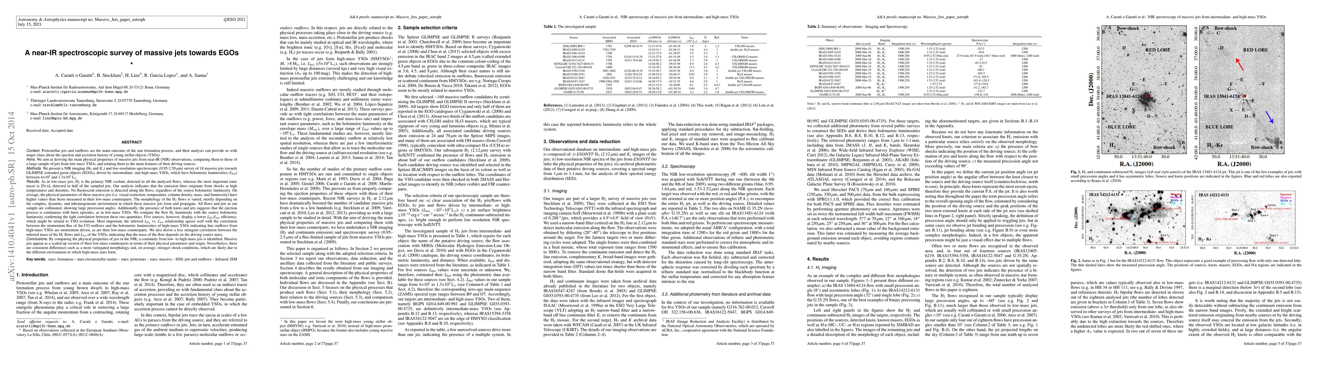 We aim at deriving the main physical properties of massive jets from near-IR observations, comparing them to those of a large sample of jets from low-mass YSOs, and relating them to the main features of their driving sources. We present a NIR imaging (H2 and Ks) and low-resolution spectroscopic (0.95-2.50 um) survey of 18 massive jets towards GLIMPSE extended green objects, driven by intermediate- and high-mass YSOs, which have Lbol between 4x10^2 and 10^5 Lsun. As in low-mass jets, H2 is the primary NIR coolant, detected in all the analysed flows, whereas the most important ionic tracer is [FeII], detected in half of the sampled jets. Our analysis indicates that the emission lines originate from shocks at high temperatures and densities. No fluorescent emission is detected along the flows, regardless of the source Lbol. On average, the physical parameters of these massive jets (i.e. Av, temperature, column density, mass, and luminosity) have higher values than those measured in their low-mass counterparts. The morphology of the H2 flows is varied, mostly depending on the complex, dynamic, and inhomogeneous environment in which these massive jets form and propagate. All flows and jets in our sample are collimated, showing large precession angles. Additionally, the presence of both knots and jets suggests that the ejection process is continuous with burst episodes, as in low-mass YSOs. We compare the flow H2 luminosity with the source Lbol confirming the tight correlation between these two quantities. Five sources, however, display a lower L(H2)/Lbol efficiency, which might be related to YSO evolution. Most important, the inferred L(H2) vs Lbol relationship agrees well with the correlation between the momentum flux of the CO outflows and the bolometric luminosities of high-mass YSOs indicating that outflows from high-mass YSOs are momentum driven, as are their low-mass counterparts.