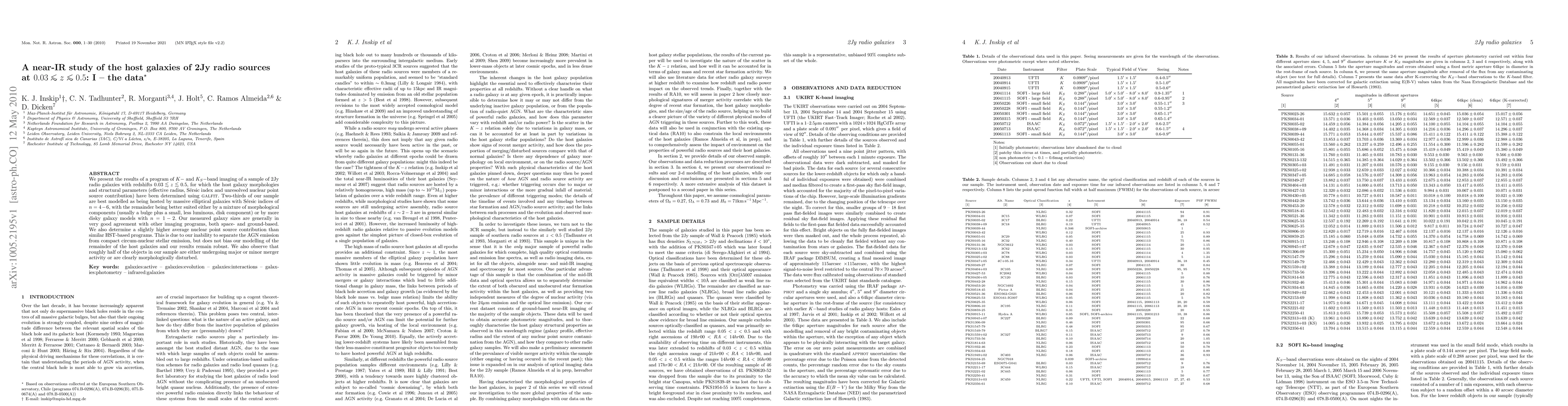 This study examines 2Jy radio galaxy host galaxies in the redshift range 0.03 < z < 0.5 using K- and Ks-band imaging. Employing GALFIT, the researchers determined galaxy morphologies and structural parameters, finding most are massive ellipticals with Sersic indices of 4-6. A third are better described by bulge+disk models or disky galaxies. The findings reveal roughly half of the sample show signs of merger activity or disturbance, with measured sizes consistent with other studies. The nuclear point source contribution is slightly higher due to conflating AGN and compact stellar emission.