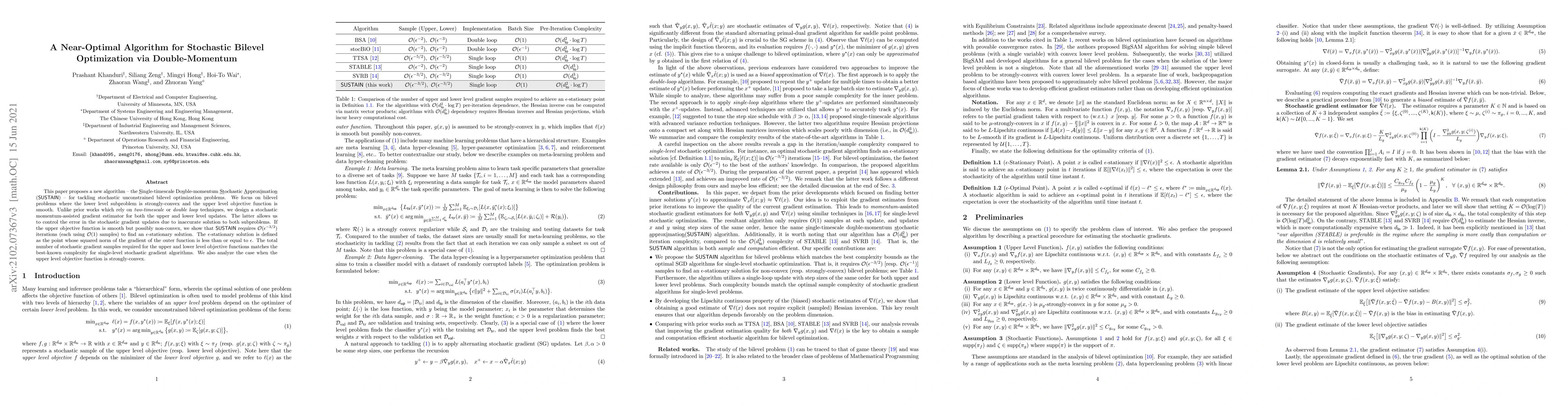 A new algorithm called SUSTAIN is proposed for solving stochastic bilevel optimization problems with improved efficiency and accuracy. It requires fewer samples than existing methods to find an approximate solution.