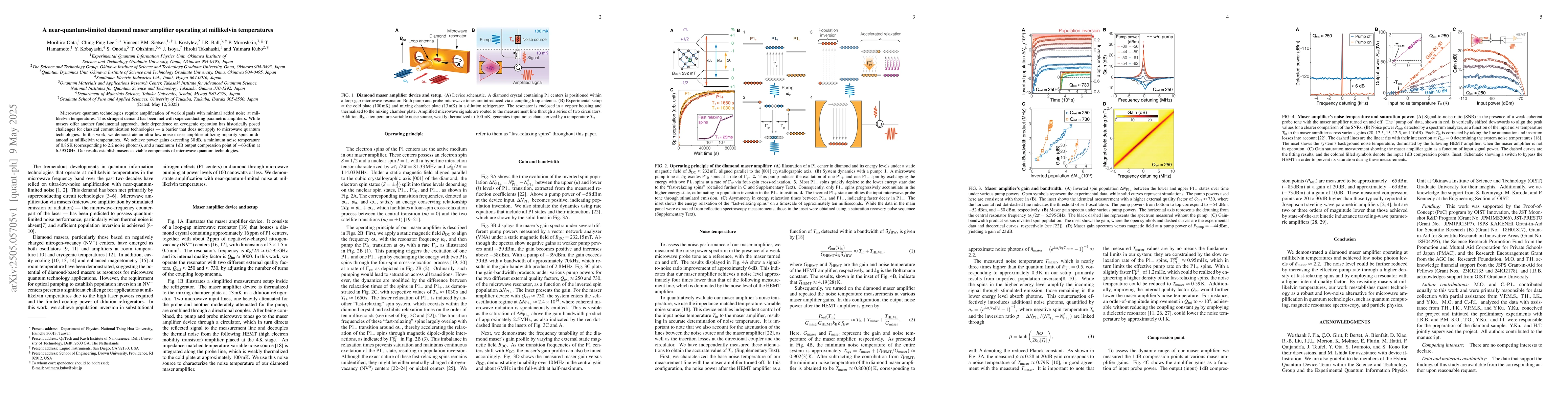 Development of a near-quantum-limited diamond maser amplifier operating at millikelvin temperatures.