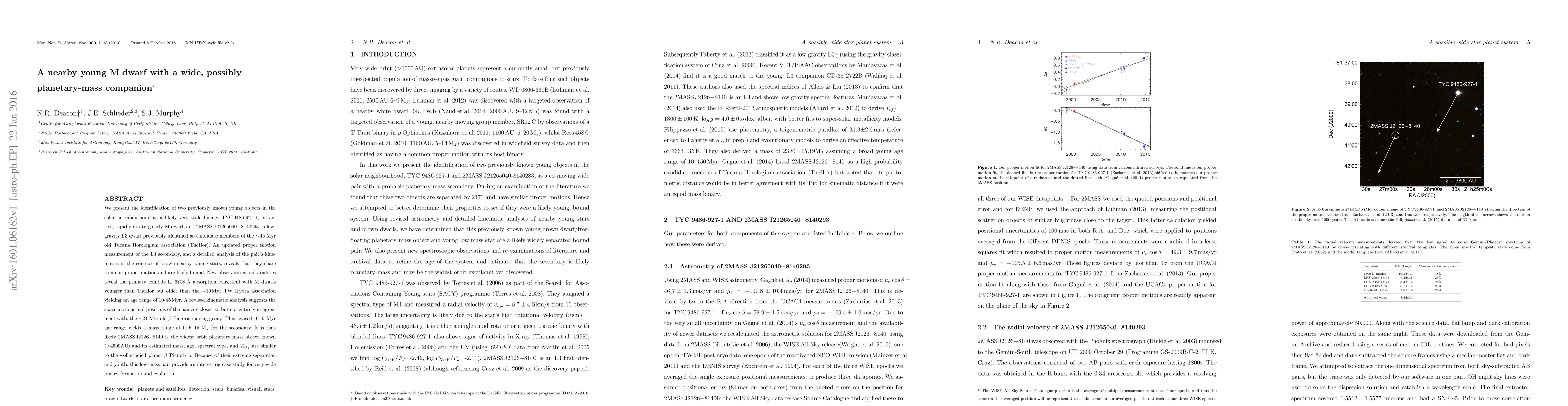 This paper identifies two young M and L dwarfs, TYC 9486-927-1 and 2MASS J21265040-8140293, as a likely wide binary system. The L3 dwarf companion, with an estimated mass of 11.6-15 M$_J$, is the widest known planetary-mass object at over 4500 AU, offering insights into very wide binary formation and evolution.