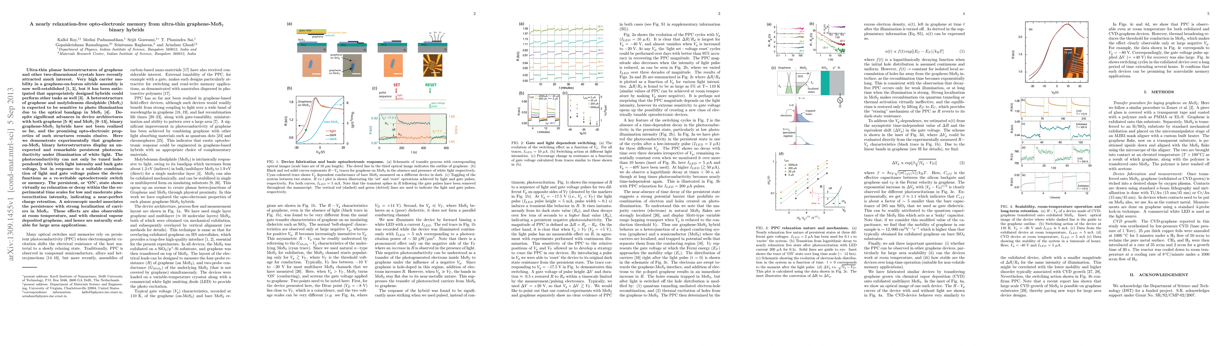 Ultra-thin planar heterostructures of graphene and other two-dimensional crystals have recently attracted much interest. Very high carrier mobility in a graphene-on-boron nitride assembly is now well-established, but it has been anticipated that appropriately designed hybrids could perform other tasks as well. A heterostructure of graphene and molybdenum disulphide (MoS$_2$) is expected to be sensitive to photo illumination due to the optical bandgap in MoS$_2$. Despite significant advances in device architectures with both graphene and MoS$_2$, binary graphene-MoS$_2$ hybrids have not been realized so far, and the promising opto-electronic properties of such structures remain elusive. Here we demonstrate experimentally that graphene-on-MoS$_2$ binary heterostructures display an unexpected and remarkable persistent photoconductivity under illumination of white light. The photoconductivity can not only be tuned independently with both light intensity and back gate voltage, but in response to a suitable combination of light and gate voltage pulses the device functions as a re-writable optoelectronic switch or memory. The persistent, or `ON', state shows virtually no relaxation or decay within the the experimental time scales for low and moderate photoexcitation intensity, indicating a near-perfect charge retention. A microscopic model associates the persistence with strong localization of carriers in MoS$_2$. These effects are also observable at room temperature, and with chemical vapour deposited graphene, and hence are naturally scalable for large area applications.