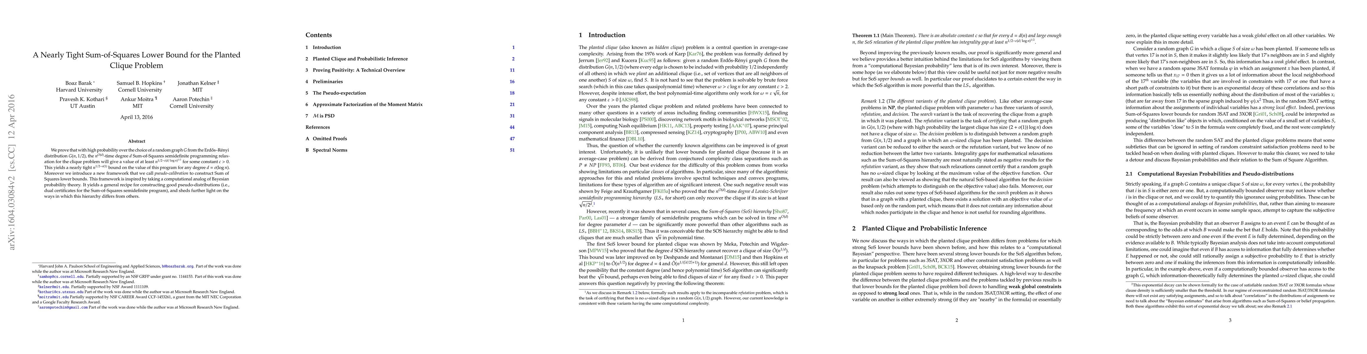 This paper establishes a nearly tight lower bound of $n^{1/2 - o(1)}$ for the Sum-of-Squares relaxation on the planted clique problem in $G(n,1/2)$, demonstrating that the $n^{O(d)}$-time degree $d$ relaxation gives a value of at least $n^{1/2-c(d/\log n)^{1/2}}$ for $d = o(\log n)$. It also introduces a novel "pseudo-calibration" framework for constructing Sum of Squares lower bounds, inspired by computational analogs of Bayesian probability theory.