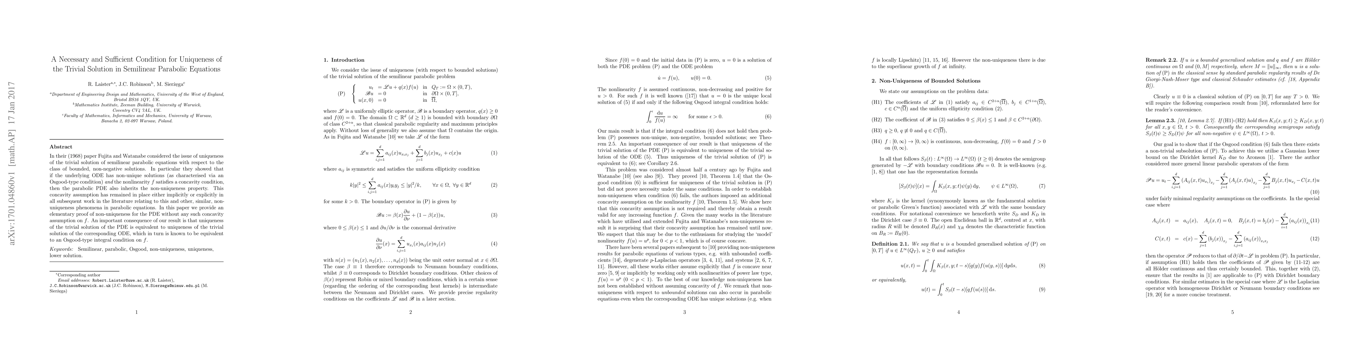 A recent study proves that uniqueness of the trivial solution in semilinear parabolic equations relies on an Osgood-type integral condition on the nonlinearity f, without requiring concavity assumptions.