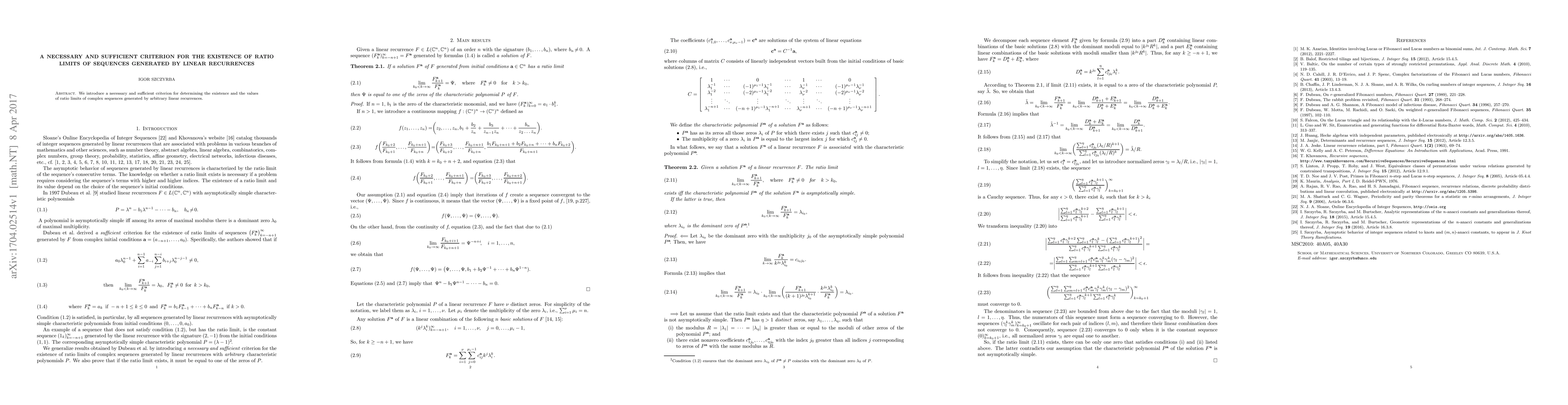 We introduce a necessary and sufficient criterion for determining the existence and the values of ratio limits of complex sequences generated by arbitrary linear recurrences.