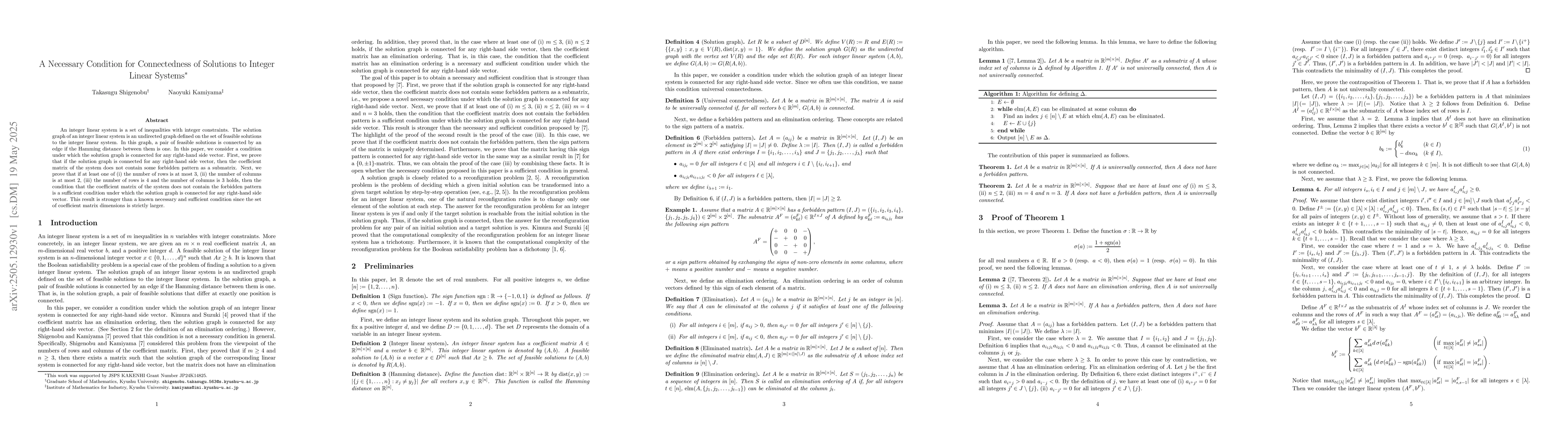The paper uses proof techniques to establish conditions for connectedness of solution graphs in integer linear systems, examining forbidden submatrix patterns in coefficient matrices.