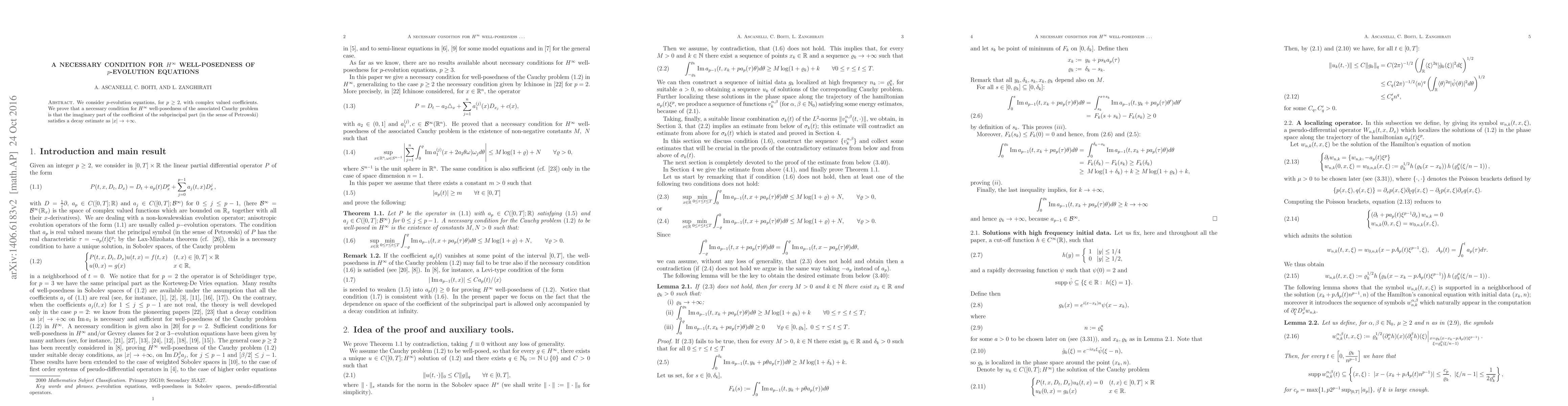 We consider p-evolution equations, for $p\geq2$, with complex valued coefficients. We prove that a necessary condition for $H^\infty$ well-posedness of the associated Cauchy problem is that the imaginary part of the coefficient of the subprincipal part (in the sense of Petrowski) satisfies a decay estimate as x goes to infinity.