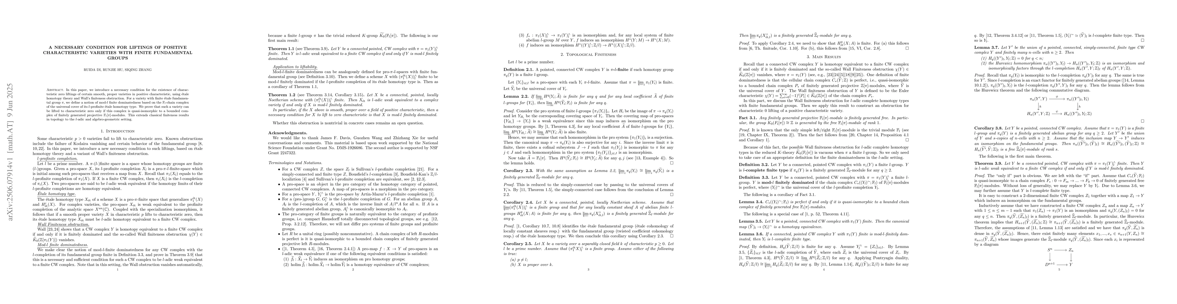 In this paper, we introduce a necessary condition for the existence of characteristic zero liftings of certain smooth, proper varieties in positive characteristic, using \'etale homotopy theory and Wall's finiteness obstruction. For a variety with finite \'etale fundamental group pi, we define a notion of mod-l finite dominatedness based on the F_l-chain complex of the universal cover of its l-profinite \'etale homotopy type. We prove that such a variety can be lifted to characteristic zero only if this complex is quasi-isomorphic to a bounded complex of finitely generated projective F_l[pi]$-modules. This extends classical finiteness results in topology to the l-adic and algebro-geometric setting.