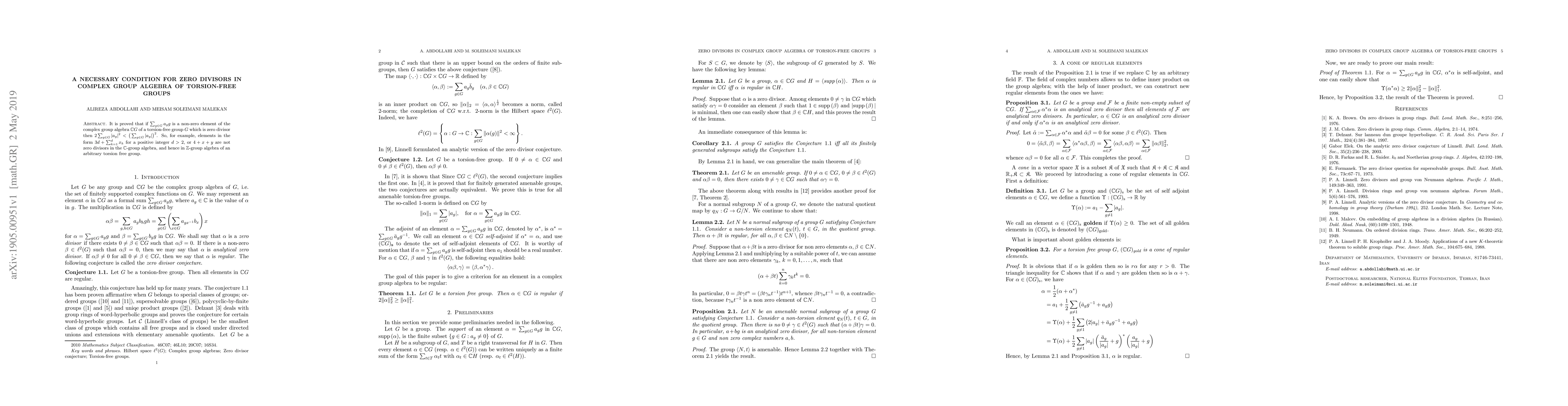 Summary: This paper establishes a necessary condition for zero divisors in the complex group algebra of torsion-free groups, contributing to the understanding of algebraic structures in these groups. The findings provide insights into the behavior of zero divisors in such algebraic contexts.