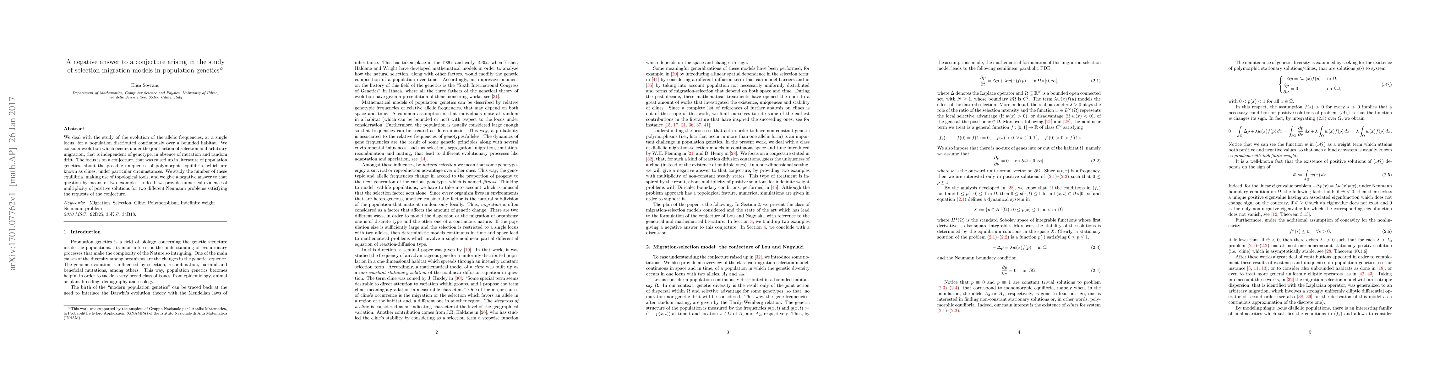 We deal with the study of the evolution of the allelic frequencies, at a single locus, for a population distributed continuously over a bounded habitat. We consider evolution which occurs under the joint action of selection and arbitrary migration, that is independent of genotype, in absence of mutation and random drift. The focus is on a conjecture, that was raised up in literature of population genetics, about the possible uniqueness of polymorphic equilibria, which are known as clines, under particular circumstances. We study the number of these equilibria, making use of topological tools, and we give a negative answer to that question by means of two examples. Indeed, we provide numerical evidence of multiplicity of positive solutions for two different Neumann problems satisfying the requests of the conjecture.
