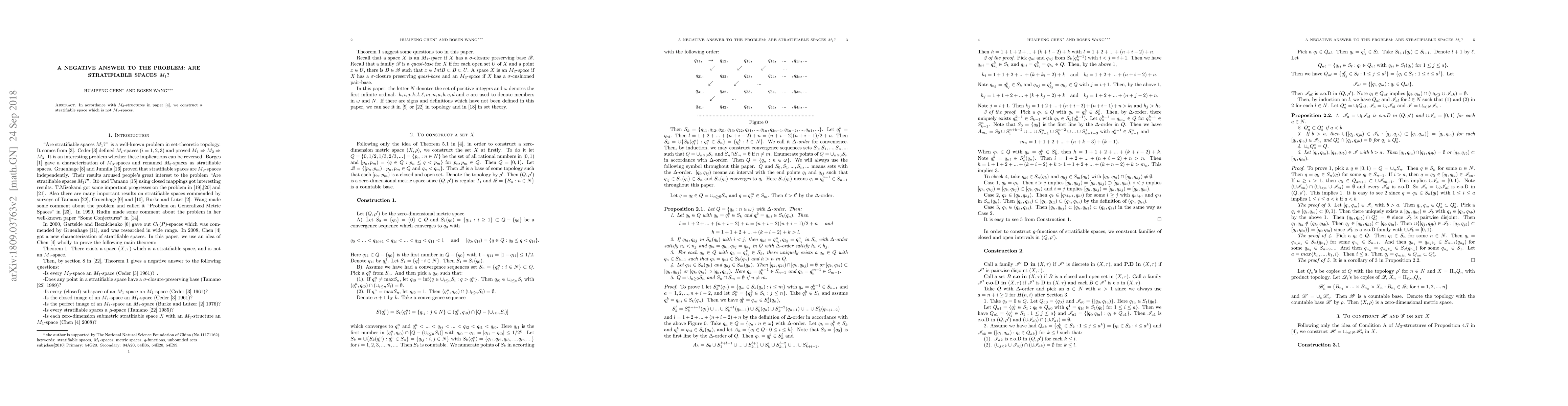 Summary: The paper constructs a stratifiable space that does not conform to $M_1$ properties, providing a negative answer to the question of whether all stratifiable spaces are $M_1$ spaces. This result aligns with findings from $M_3$-structures discussed in a referenced paper.
