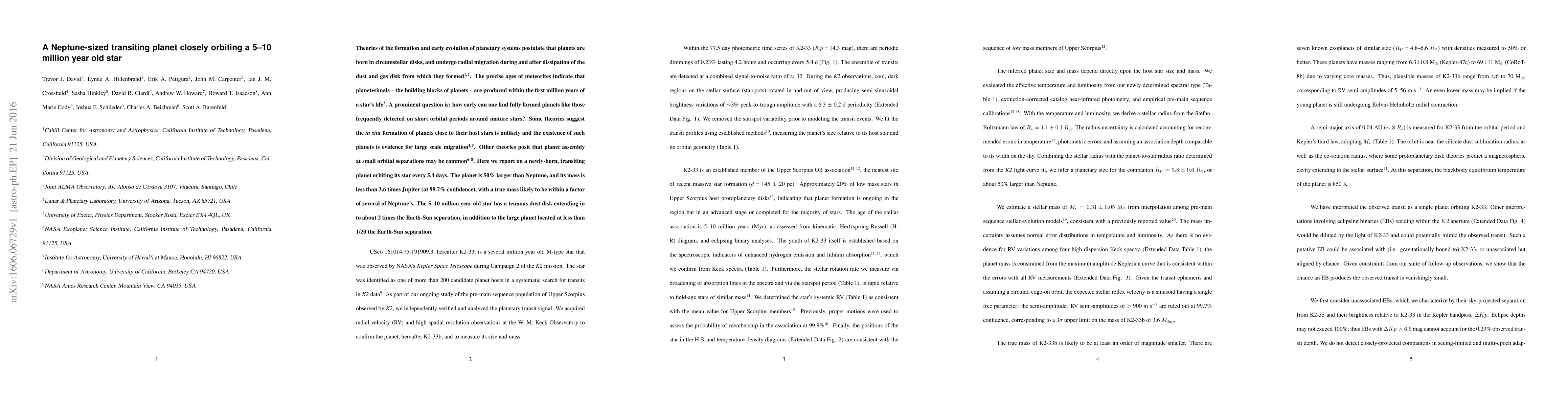 This paper reports a Neptune-sized transiting planet orbiting a young, 5-10 million-year-old star every 5.4 days, challenging theories on planetary formation and migration, as it suggests planet assembly may occur close to the host star even in early stellar systems.