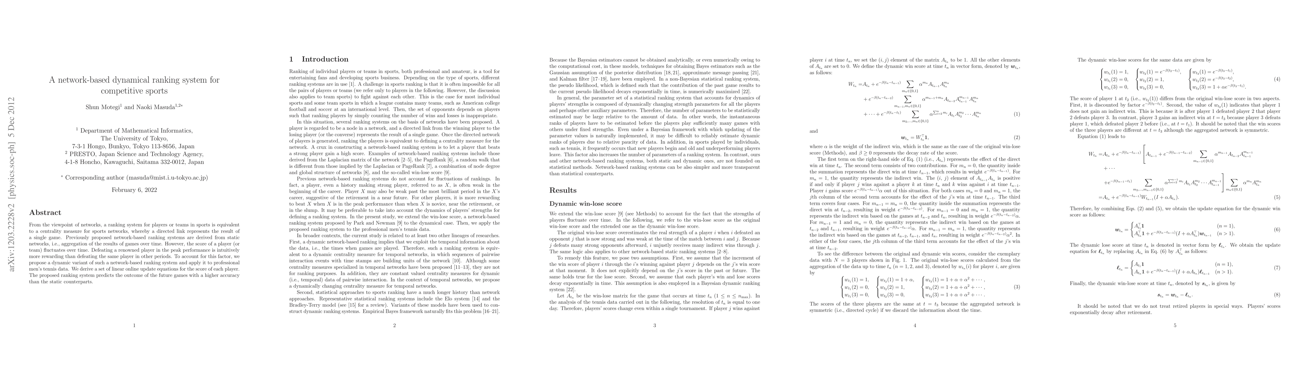 A dynamic network-based ranking system was proposed for competitive sports, outperforming traditional static systems in predicting game outcomes by accounting for fluctuating player scores.