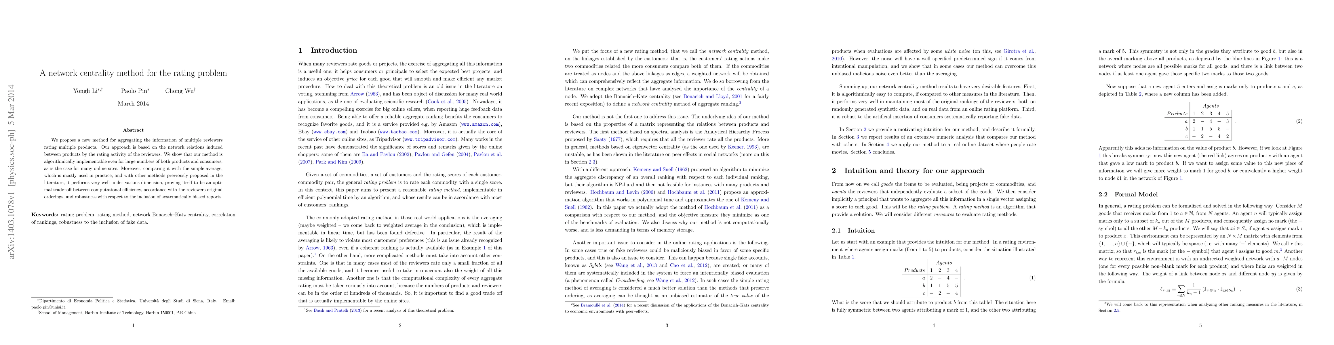 We propose a new method for aggregating the information of multiple reviewers rating multiple products. Our approach is based on the network relations induced between products by the rating activity of the reviewers. We show that our method is algorithmically implementable even for large numbers of both products and consumers, as is the case for many online sites. Moreover, comparing it with the simple average, which is mostly used in practice, and with other methods previously proposed in the literature, it performs very well under various dimension, proving itself to be an optimal trade--off between computational efficiency, accordance with the reviewers original orderings, and robustness with respect to the inclusion of systematically biased reports.
