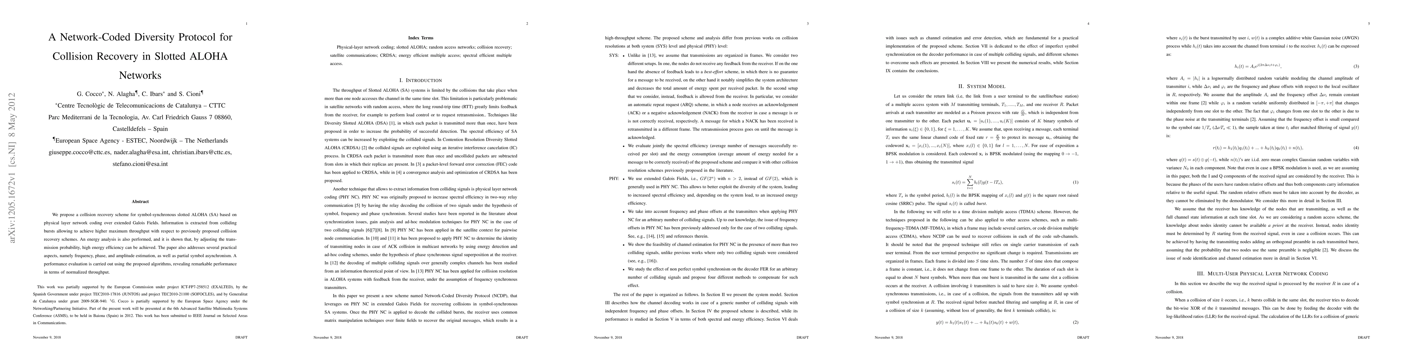 A new collision recovery scheme for slotted ALOHA networks uses physical layer network coding to extract information from colliding bursts, achieving higher maximum throughput than previous schemes. The scheme also achieves high energy efficiency by adjusting transmission probabilities.