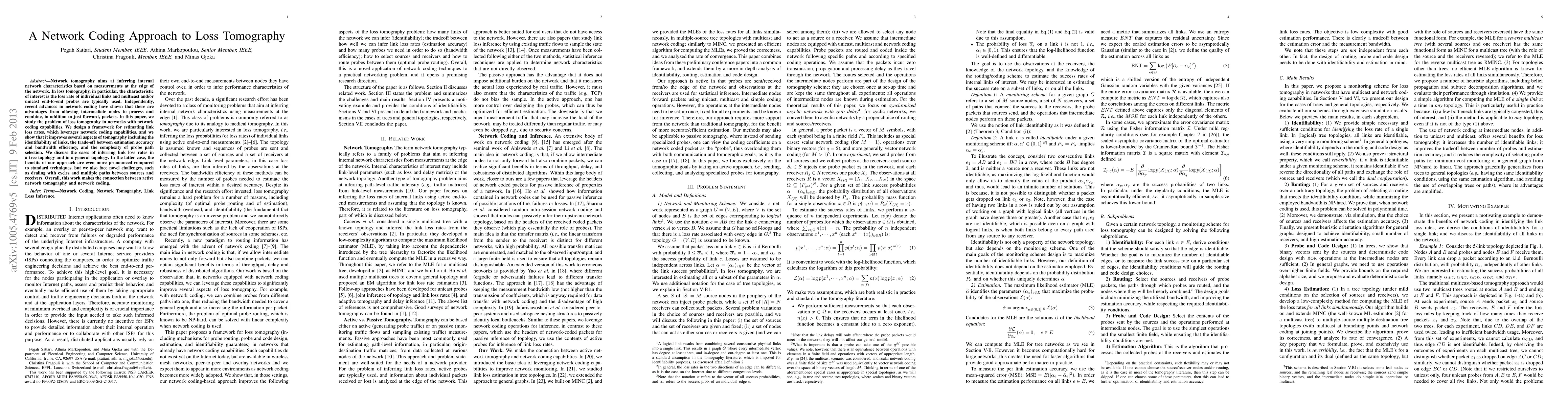 This paper proposes a network coding approach to enhance loss tomography in networks, leveraging coding capabilities to improve link loss rate estimation, probe path selection, and overall identifiability, especially in complex topologies. The framework shows significant benefits over traditional methods, addressing challenges like cycles and multiple paths.