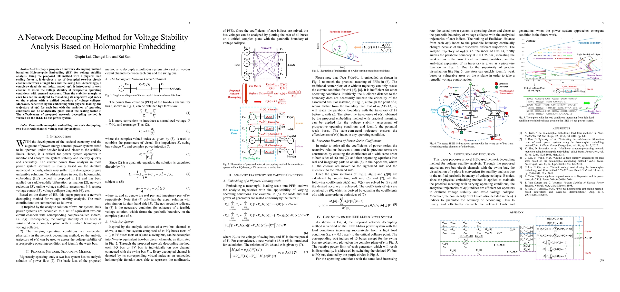 The proposed network decoupling method is based on Holomorphic Embedding (HE) for voltage stability analysis.