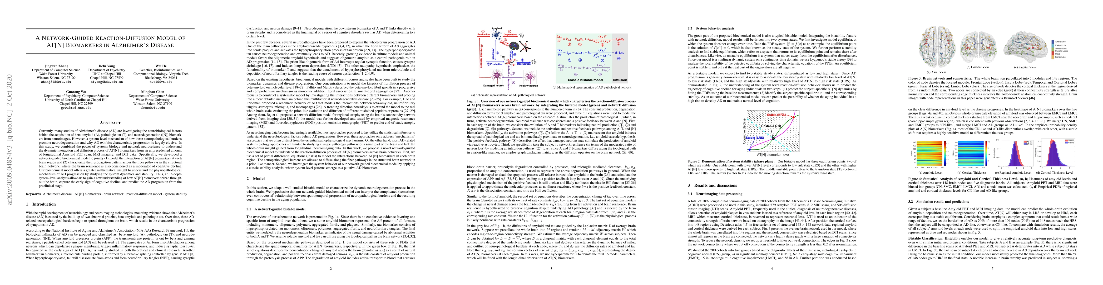This study develops a network-guided reaction-diffusion model to understand the dynamic interaction and propagation of AT[N] biomarkers in Alzheimer's disease, offering insights into the system-level mechanisms underlying AD progression and cognitive decline.