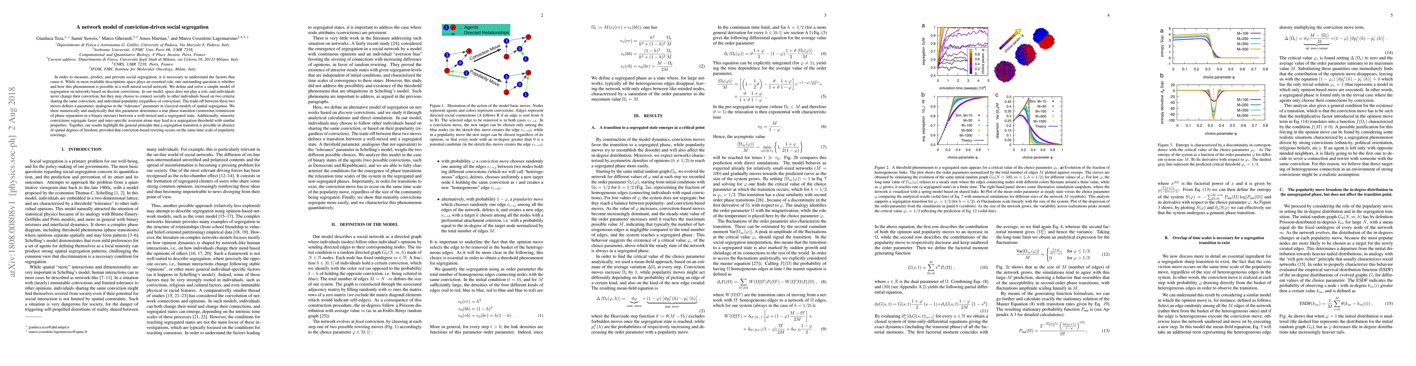 This paper proposes a network model to understand social segregation driven by discrete convictions without spatial factors. It demonstrates that a segregation phase transition occurs based on a "tolerance" parameter balancing conviction-based and popularity-based social connections, highlighting segregation's potential in well-mixed networks.