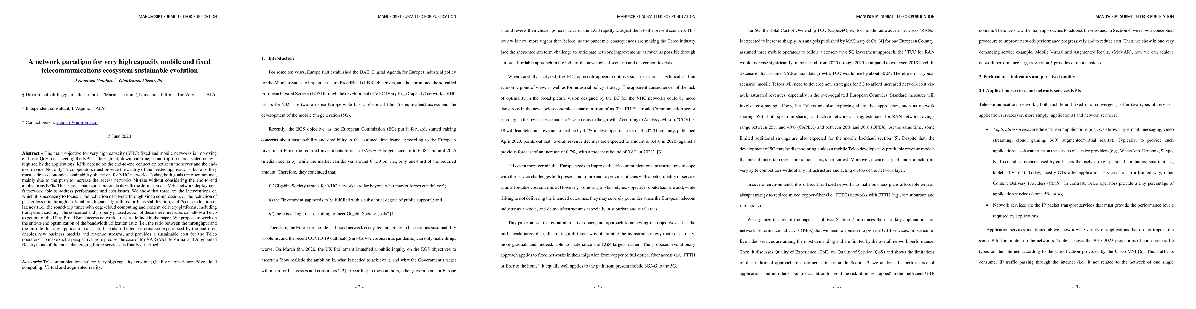 For very high capacity networks (VHC), the main objective is to improve the quality of the end-user experience. This implies compliance with key performance indicators (KPIs) required by applications. Key performance indicators at the application level are throughput, download time, round trip time, and video delay. They depend on the end-to-end connection between the server and the end-user device. For VHC networks, Telco operators must provide the required application quality. Moreover, they must meet the objectives of economic sustainability. Today, Telco operators rarely achieve the above objectives, mainly due to the push to increase the bit-rate of access networks without considering the end-to-end KPIs of the applications. The main contribution of this paper concerns the definition of a deployment framework to address performance and cost issues for VHC networks. We show three actions on which it is necessary to focus. First, limiting bit-rate through video compression. Second, contain the rate of packet loss through artificial intelligence algorithms for line stabilization. Third, reduce latency (i.e., round-trip time) with edge-cloud computing. The concerted and gradual application of these measures can allow a Telco to get out of the ultra-broadband "trap" of the access network, as defined in the paper. We propose to work on end-to-end optimization of the bandwidth utilization ratio. This leads to a better performance experienced by the end-user. It also allows a Telco operator to create new business models and obtain new revenue streams at a sustainable cost. To give a clear example, we describe how to realize mobile virtual and augmented reality, which is one of the most challenging future services.