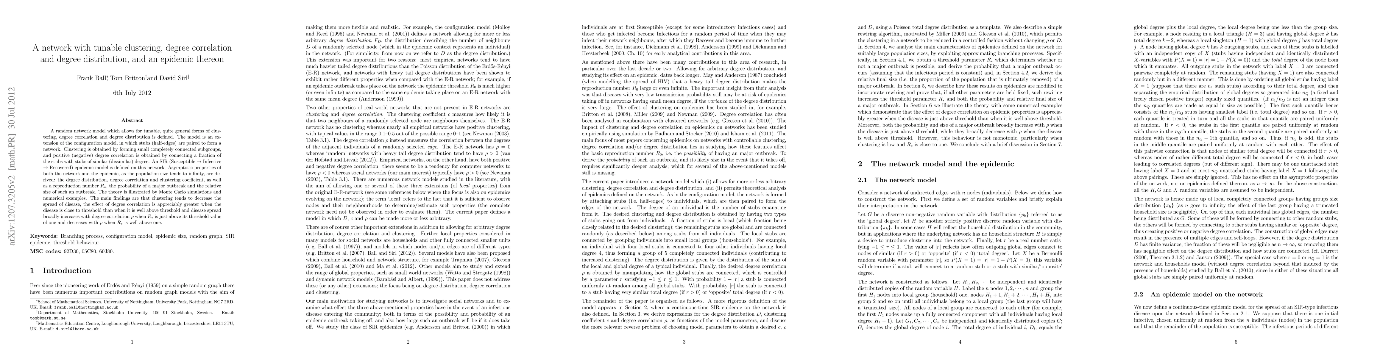 This paper introduces a tunable network model that allows for customizable clustering, degree correlation, and degree distribution. It explores an SIR epidemic on this network, finding that clustering reduces disease spread, while degree correlation significantly impacts disease dynamics near the threshold value of the reproduction number $R_*$.