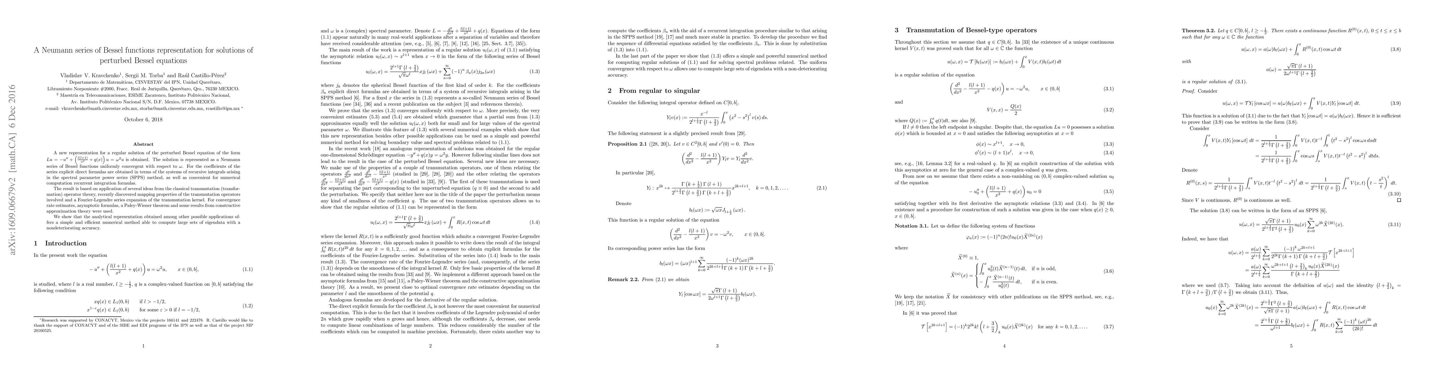 This paper presents a Neumann series representation for solving perturbed Bessel equations using Bessel functions. The proposed method provides a uniformly convergent series with explicit recursive formulas, which is both analytically derived and computationally efficient for numerical computation of eigendata.