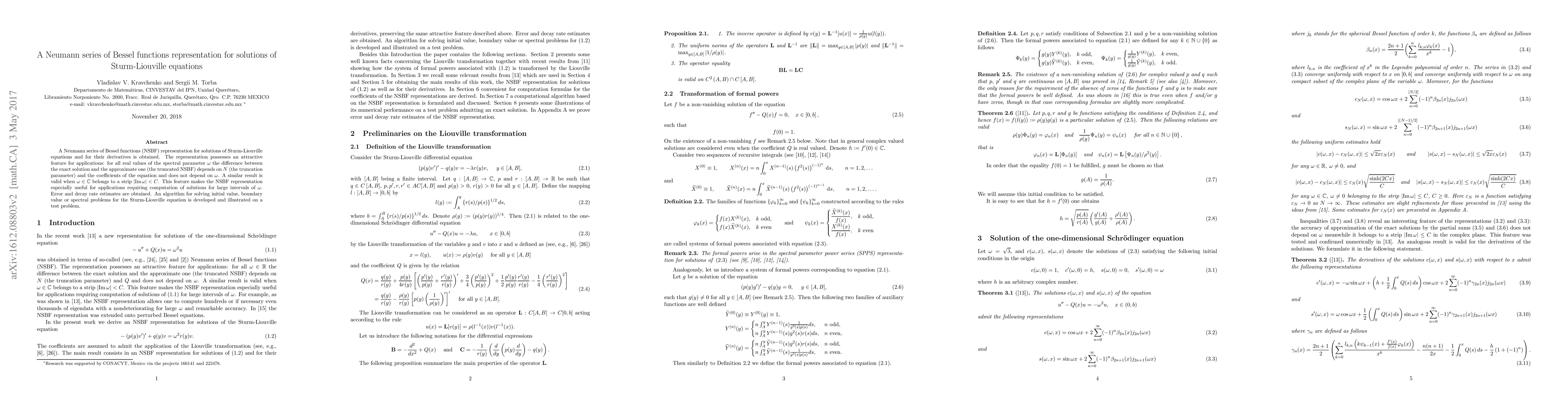 This paper presents a Neumann series of Bessel functions (NSBF) representation for solutions of Sturm-Liouville equations, offering an error-independent method valid for both real and complex spectral parameters within a specified strip. The approach provides an efficient computational scheme and is particularly useful for large intervals of the spectral parameter.