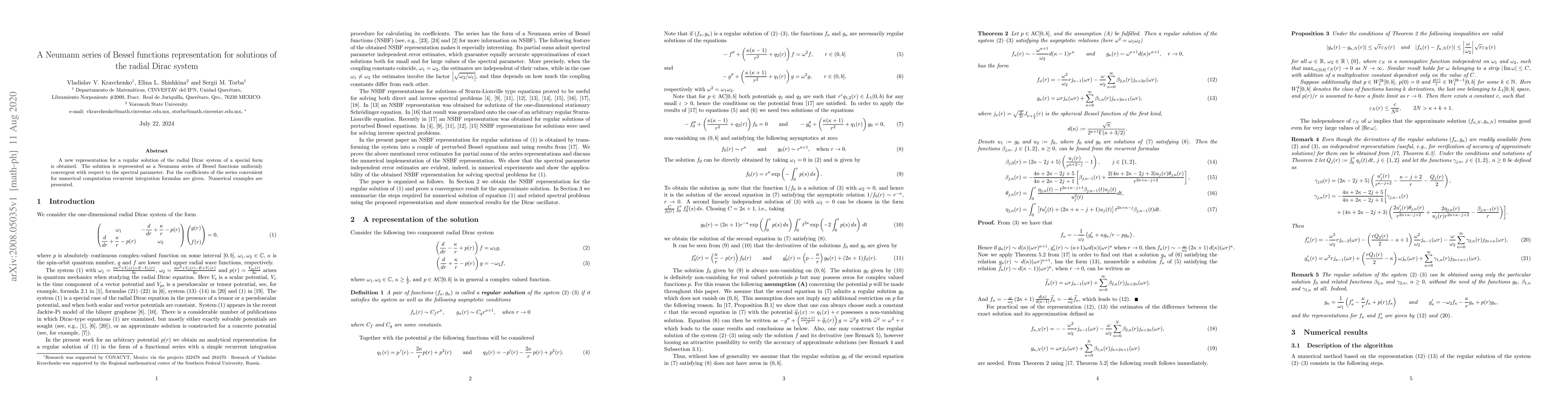 This paper presents a new representation of regular solutions to the radial Dirac system using a Neumann series of Bessel functions, which is uniformly convergent. The paper also provides recurrent integration formulas for the series coefficients, facilitating numerical computation, and includes numerical examples to demonstrate the method.