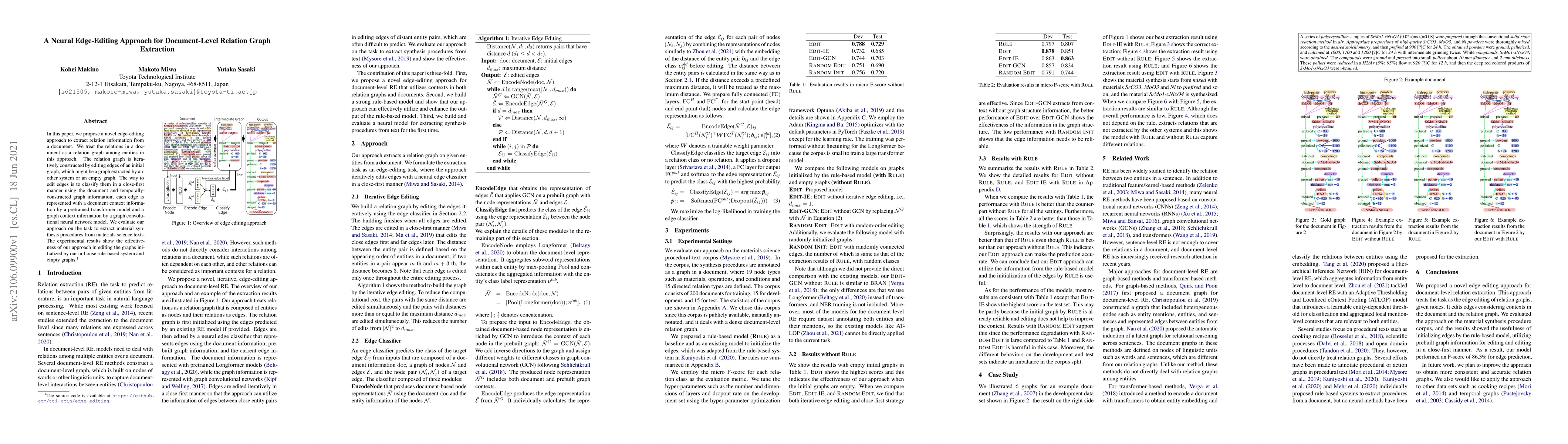 This paper introduces a neural edge-editing method for constructing document-level relation graphs by iteratively refining edges using a transformer model for document context and a graph convolutional neural network for graph context. The approach is shown to effectively extract material synthesis procedures from materials science texts.
