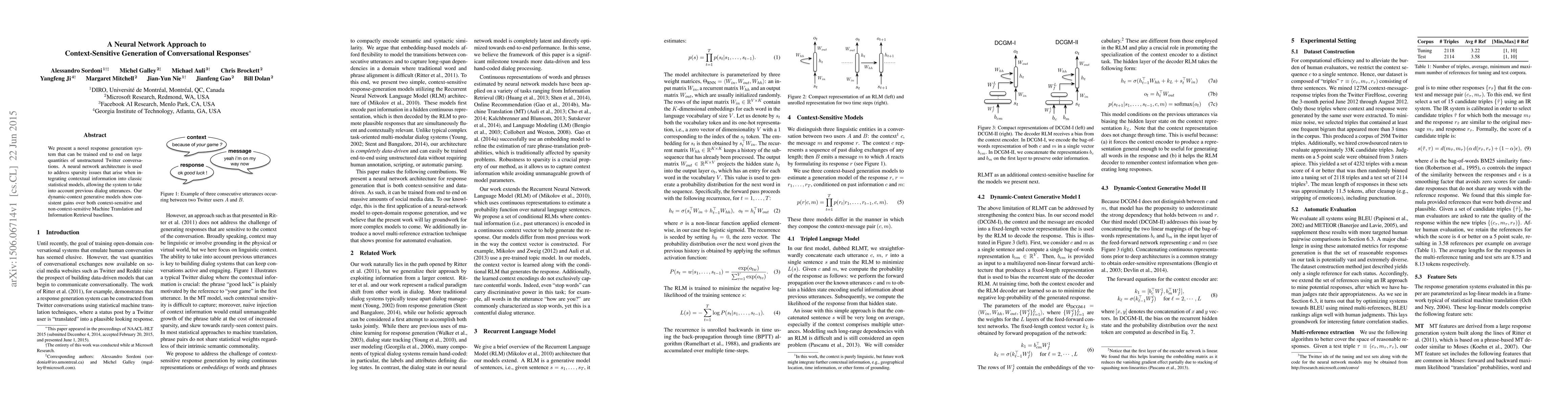 A new neural network approach can generate conversational responses that take into account previous dialog utterances, outperforming existing methods in conversation-related tasks.