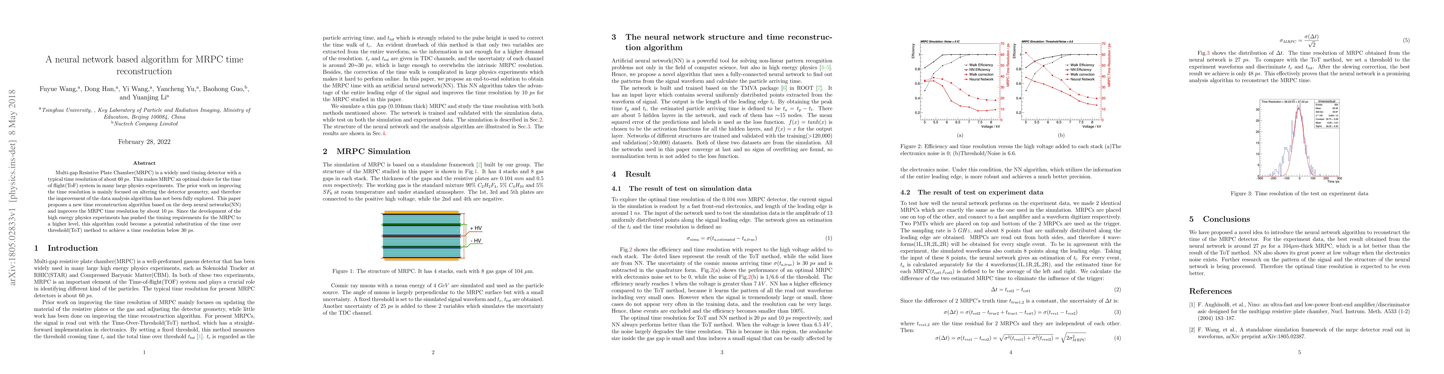 Multi-gap Resistive Plate Chamber(MRPC) is a widely used timing detector with a typical time resolution of about 60 ps. This makes MRPC an optimal choice for the time of flight(ToF) system in many large physics experiments. The prior work on improving the time resolution is mainly focused on altering the detector geometry, and therefore the improvement of the data analysis algorithm has not been fully explored. This paper proposes a new time reconstruction algorithm based on the deep neural networks(NN) and improves the MRPC time resolution by about 10 ps. Since the development of the high energy physics experiments has pushed the timing requirements for the MRPC to a higher level, this algorithm could become a potential substitution of the time over threshold(ToT) method to achieve a time resolution below 30 ps.