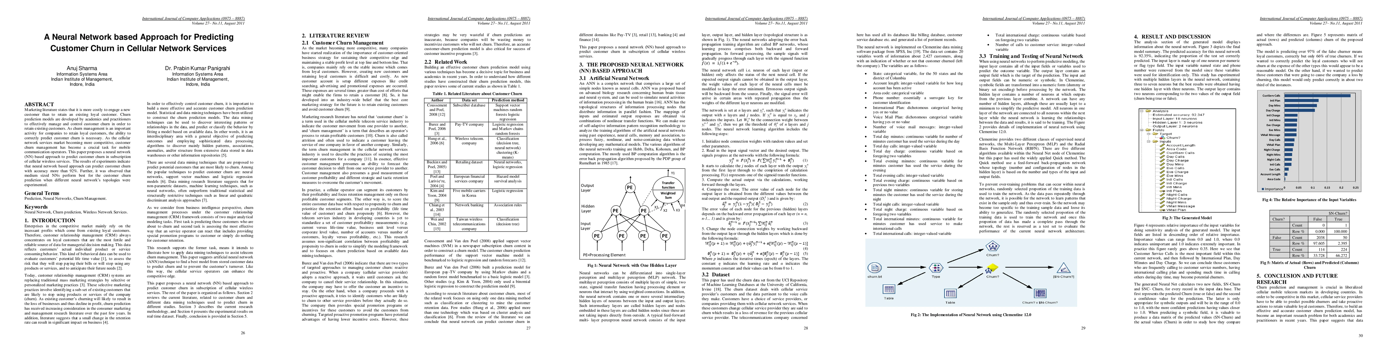 This paper proposes a neural network-based approach to predict customer churn in cellular network services, emphasizing its importance for retaining loyal customers in a competitive market. Experimental results demonstrate the effectiveness of the neural network model in accurately predicting customer churn.