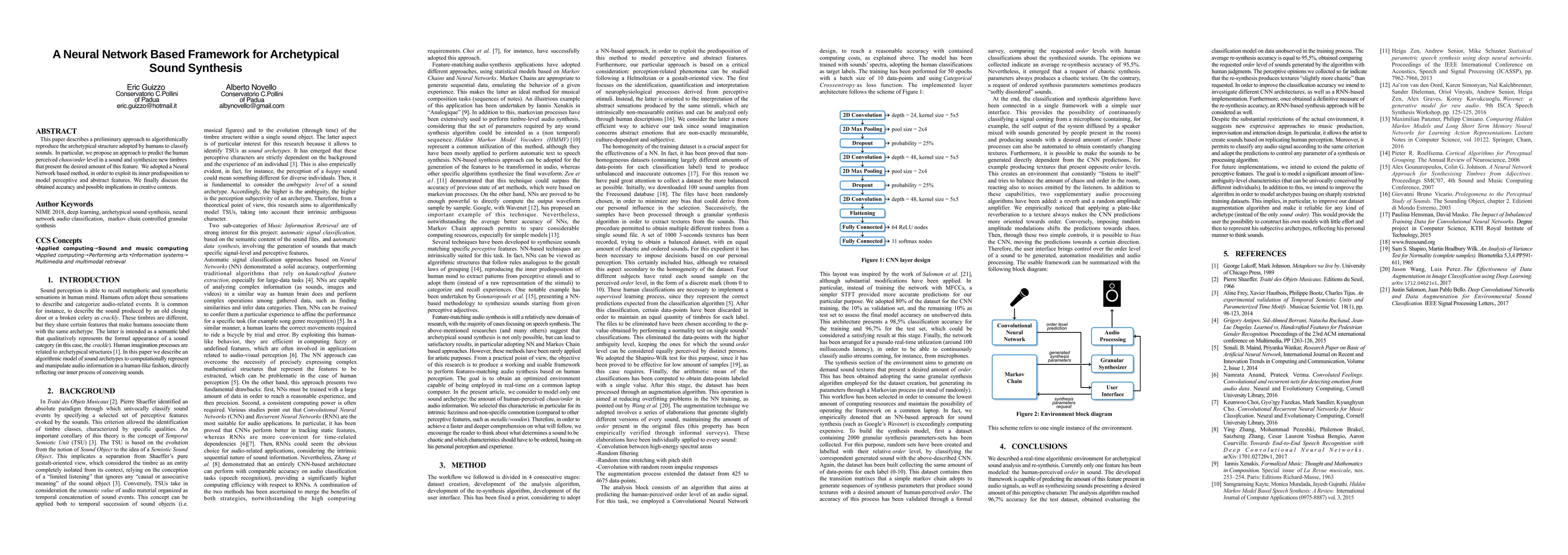 This paper describes a preliminary approach to algorithmically reproduce the archetypical structure adopted by humans to classify sounds. In particular, we propose an approach to predict the human perceived chaos/order level in a sound and synthesize new timbres that present the desired amount of this feature. We adopted a Neural Network based method, in order to exploit its inner predisposition to model perceptive and abstract features. We finally discuss the obtained accuracy and possible implications in creative contexts.