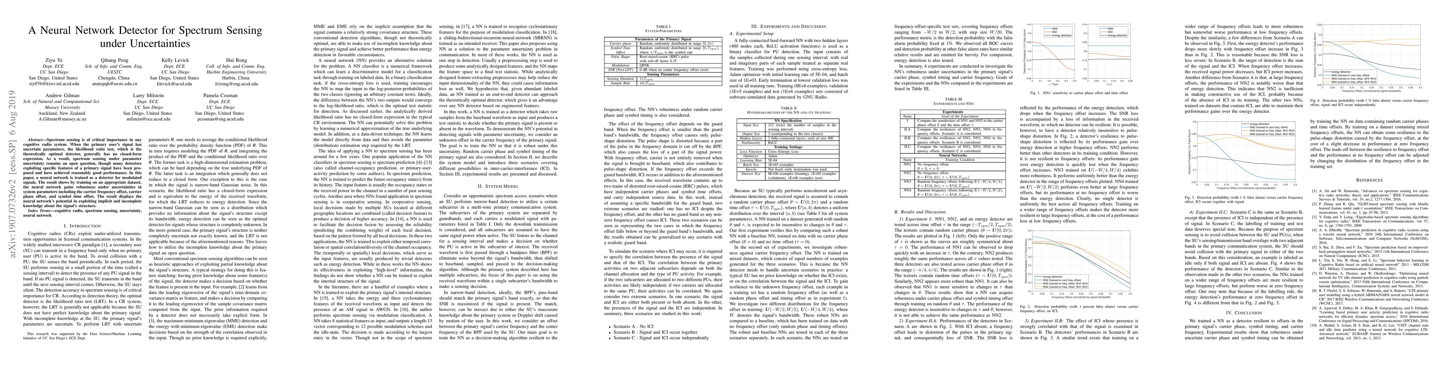 This paper proposes a neural network detector for spectrum sensing in cognitive radio systems, addressing uncertainties in primary user signal parameters. The trained neural network demonstrates robustness against carrier frequency, phase, and symbol time offsets, showcasing its potential to leverage implicit and incomplete signal knowledge.