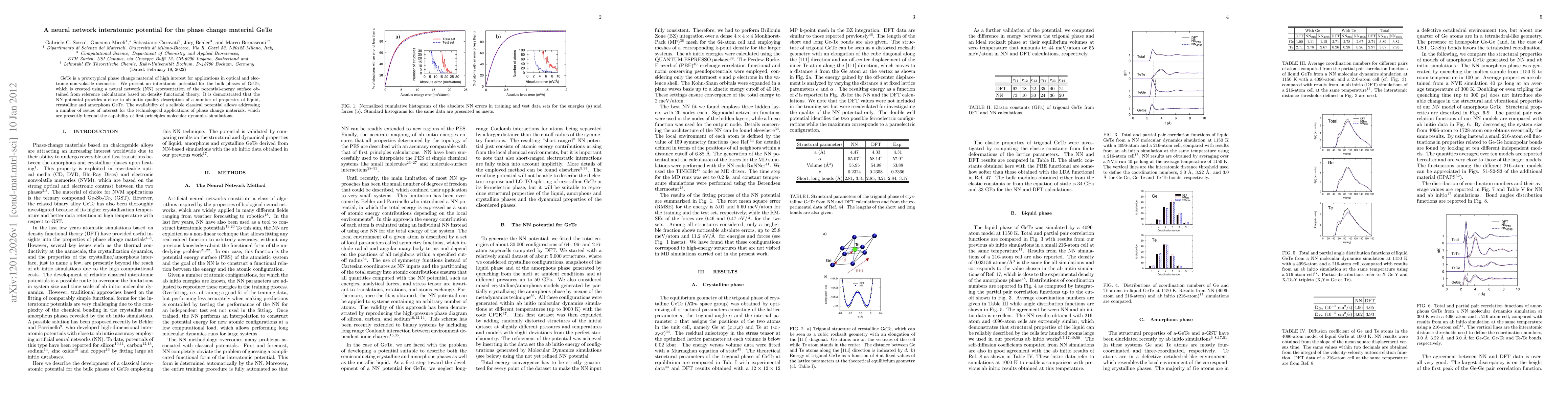 This paper presents a neural network-based interatomic potential for GeTe, a phase change material, derived from density functional theory calculations. The neural network potential accurately describes various properties of GeTe, enabling simulations that are currently beyond the reach of first principles methods.