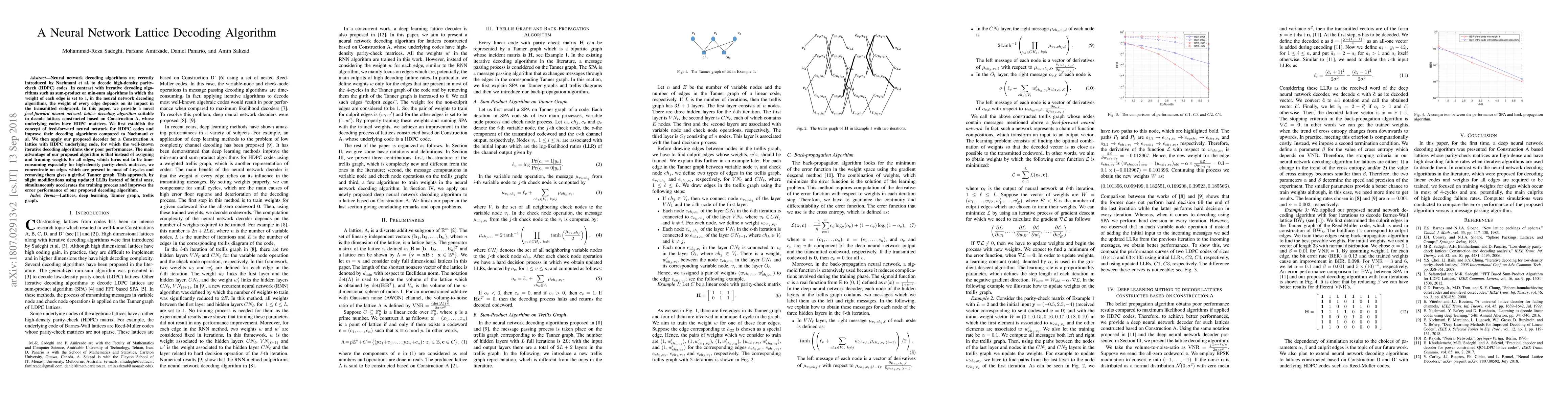 This paper introduces a novel feed-forward neural network lattice decoding algorithm for high-density parity-check codes, improving upon previous methods. It focuses on edges in 4-cycles to create a girth-6 Tanner graph, accelerating training and enhancing decoding performance.