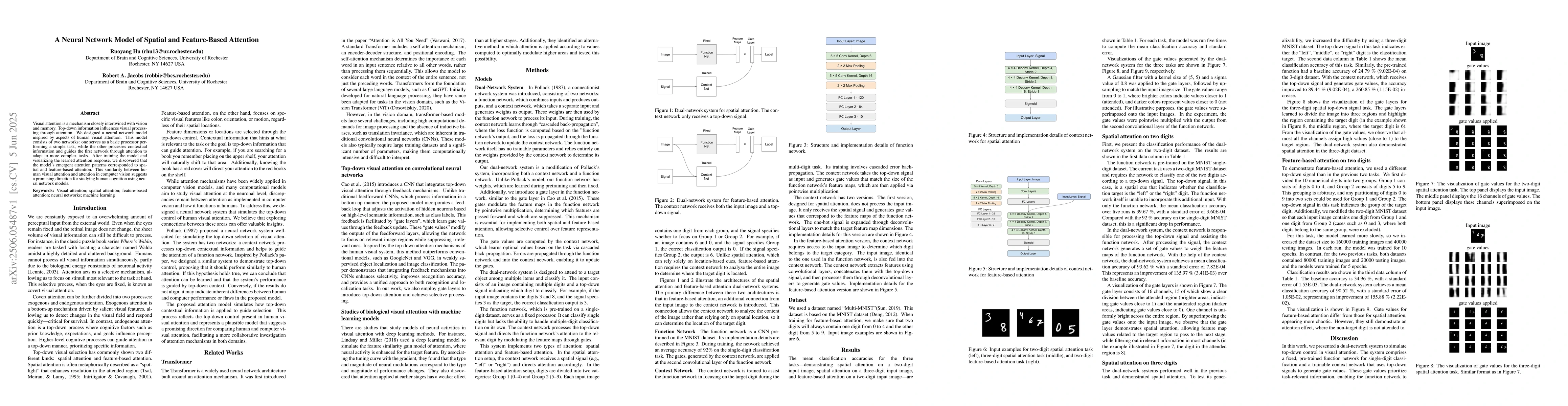 Visual attention is a mechanism closely intertwined with vision and memory. Top-down information influences visual processing through attention. We designed a neural network model inspired by aspects of human visual attention. This model consists of two networks: one serves as a basic processor performing a simple task, while the other processes contextual information and guides the first network through attention to adapt to more complex tasks. After training the model and visualizing the learned attention response, we discovered that the model's emergent attention patterns corresponded to spatial and feature-based attention. This similarity between human visual attention and attention in computer vision suggests a promising direction for studying human cognition using neural network models.