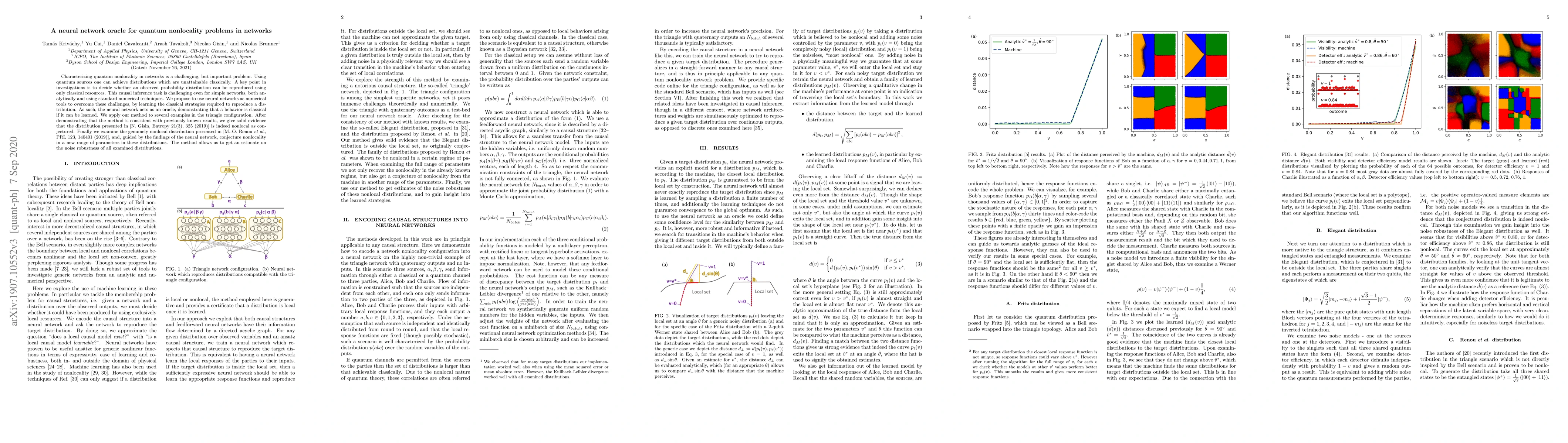 Characterizing quantum nonlocality in networks is a challenging, but important problem. Using quantum sources one can achieve distributions which are unattainable classically. A key point in investigations is to decide whether an observed probability distribution can be reproduced using only classical resources. This causal inference task is challenging even for simple networks, both analytically and using standard numerical techniques. We propose to use neural networks as numerical tools to overcome these challenges, by learning the classical strategies required to reproduce a distribution. As such, the neural network acts as an oracle, demonstrating that a behavior is classical if it can be learned. We apply our method to several examples in the triangle configuration. After demonstrating that the method is consistent with previously known results, we give solid evidence that the distribution presented in [N. Gisin, Entropy 21(3), 325 (2019)] is indeed nonlocal as conjectured. Finally we examine the genuinely nonlocal distribution presented in [M.-O. Renou et al., PRL 123, 140401 (2019)], and, guided by the findings of the neural network, conjecture nonlocality in a new range of parameters in these distributions. The method allows us to get an estimate on the noise robustness of all examined distributions.