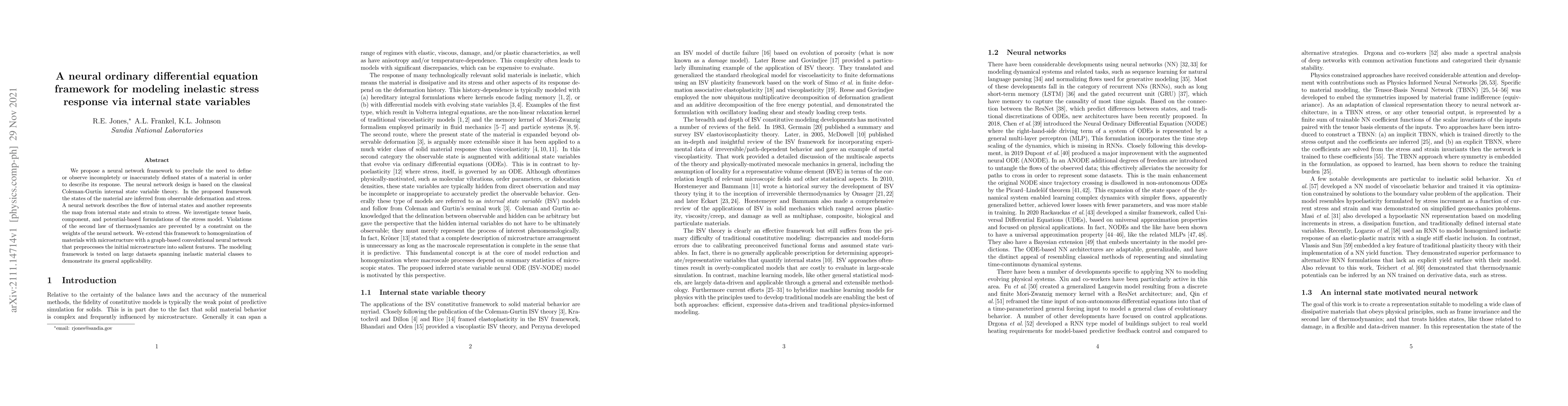 We propose a neural network framework to preclude the need to define or observe incompletely or inaccurately defined states of a material in order to describe its response. The neural network design is based on the classical Coleman-Gurtin internal state variable theory. In the proposed framework the states of the material are inferred from observable deformation and stress. A neural network describes the flow of internal states and another represents the map from internal state and strain to stress. We investigate tensor basis, component, and potential-based formulations of the stress model. Violations of the second law of thermodynamics are prevented by a constraint on the weights of the neural network. We extend this framework to homogenization of materials with microstructure with a graph-based convolutional neural network that preprocesses the initial microstructure into salient features. The modeling framework is tested on large datasets spanning inelastic material classes to demonstrate its general applicability.