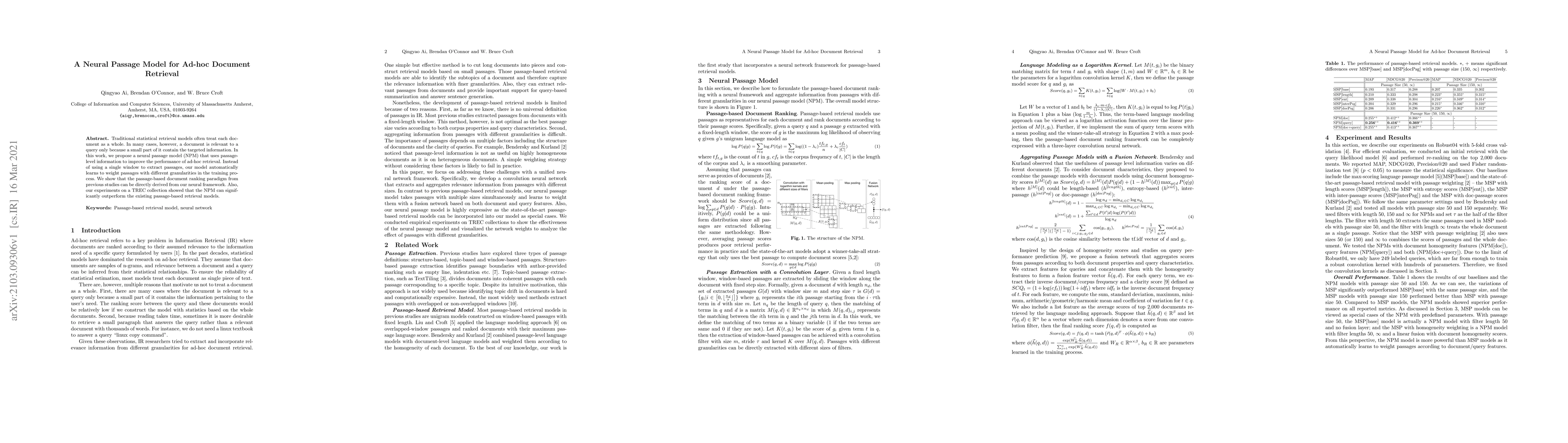 This paper proposes a neural passage model (NPM) that enhances ad-hoc document retrieval by using passage-level information instead of treating entire documents as units, leading to improved performance. The model learns to weight passages of different granularities, outperforming existing passage-based retrieval models in TREC experiments.