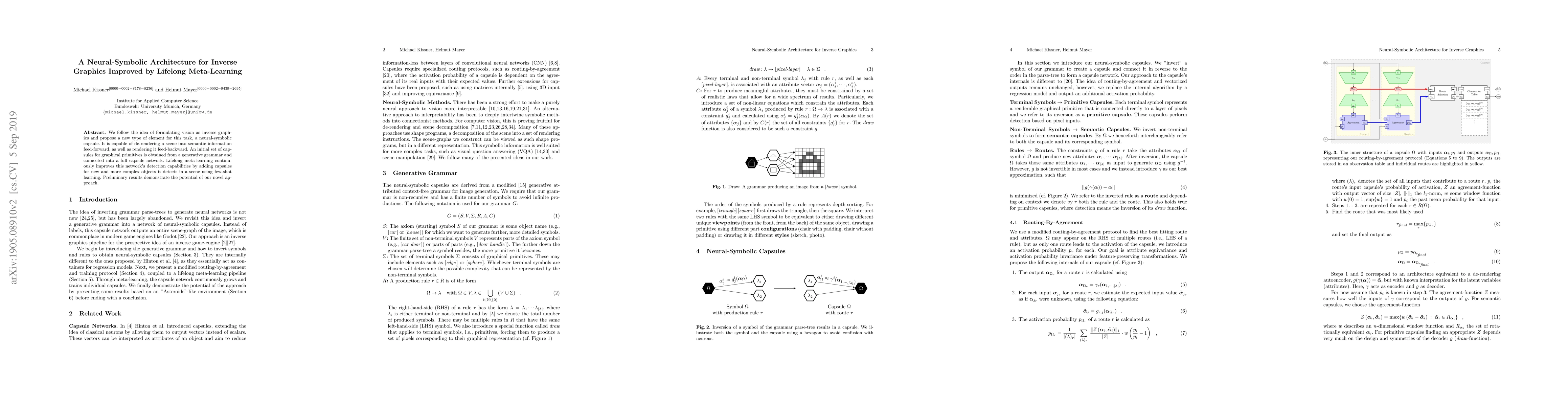 We follow the idea of formulating vision as inverse graphics and propose a new type of element for this task, a neural-symbolic capsule. It is capable of de-rendering a scene into semantic information feed-forward, as well as rendering it feed-backward. An initial set of capsules for graphical primitives is obtained from a generative grammar and connected into a full capsule network. Lifelong meta-learning continuously improves this network's detection capabilities by adding capsules for new and more complex objects it detects in a scene using few-shot learning. Preliminary results demonstrate the potential of our novel approach.