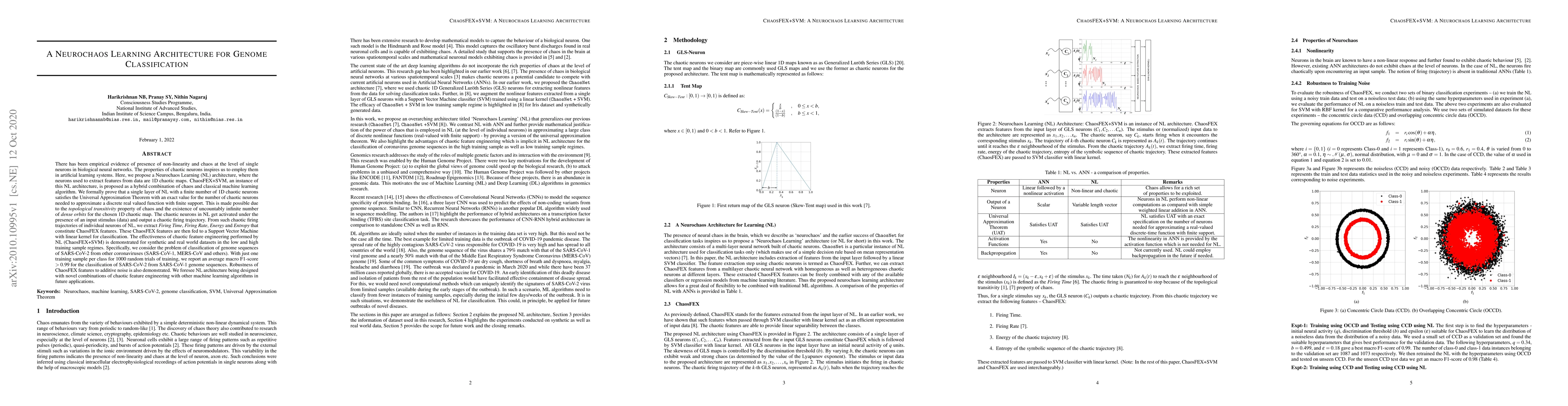 This paper proposes a Neurochaos Learning architecture that utilizes chaotic neurons to extract features from data, termed ChaosFEX, which are then classified using a Support Vector Machine. The architecture demonstrates high classification accuracy, even with minimal training samples, and shows robustness against noise, particularly in classifying SARS-CoV-2 genome sequences.